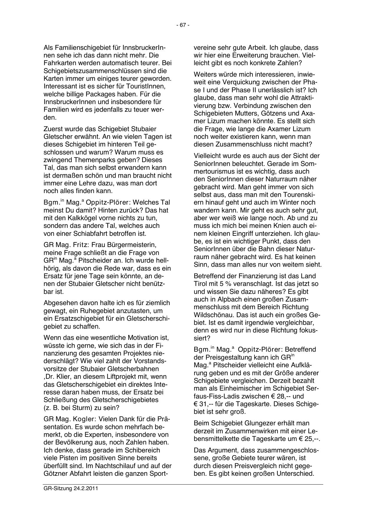 GRin Mag.a Pitscheider an. Ich wurde hellhörig, als davon die Rede war, dass es ein