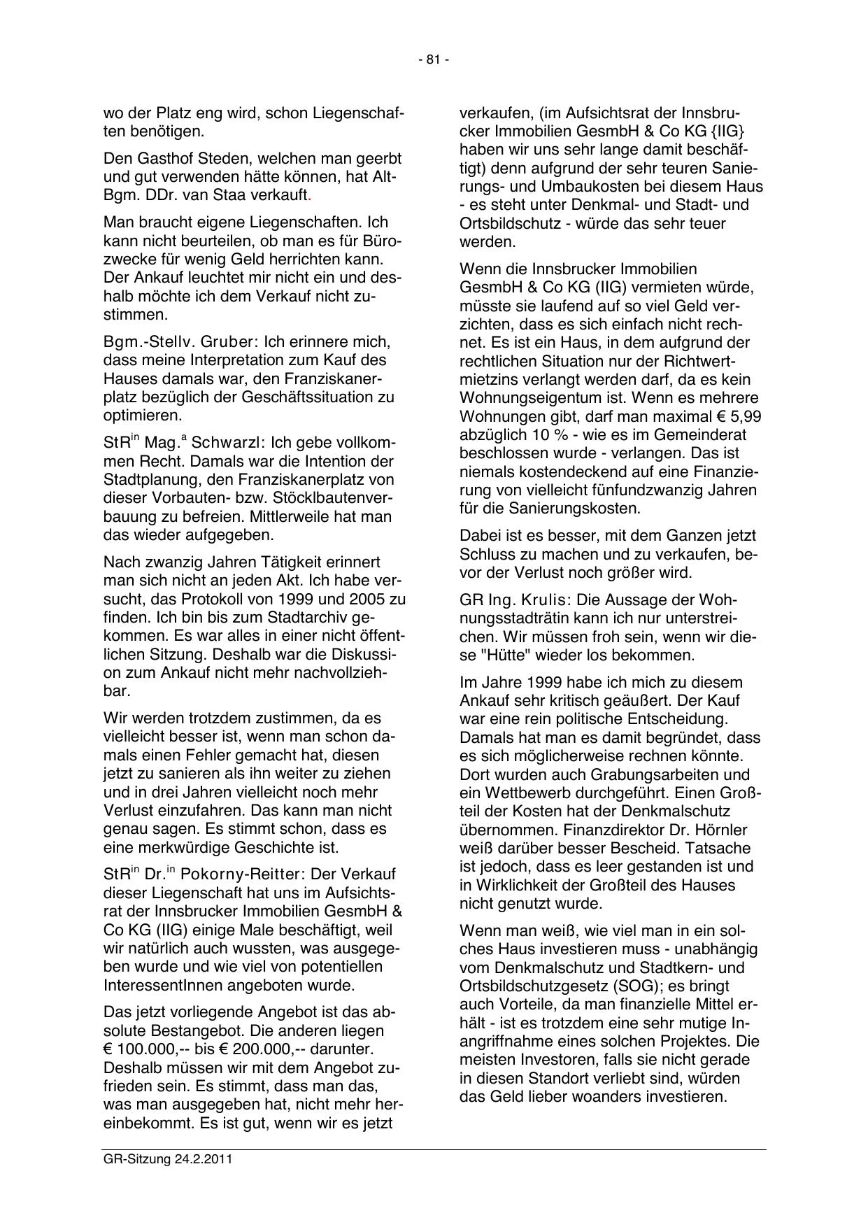 dieser Liegenschaft hat uns im Aufsichtsrat der Innsbrucker Immobilien GesmbH &