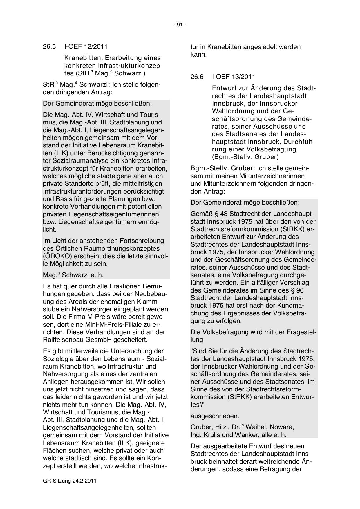 der Innsbrucker Wahlordnung und der Geschäftsordnung des Gemeinderates, seiner Ausschüsse und des Stadtsenates, im