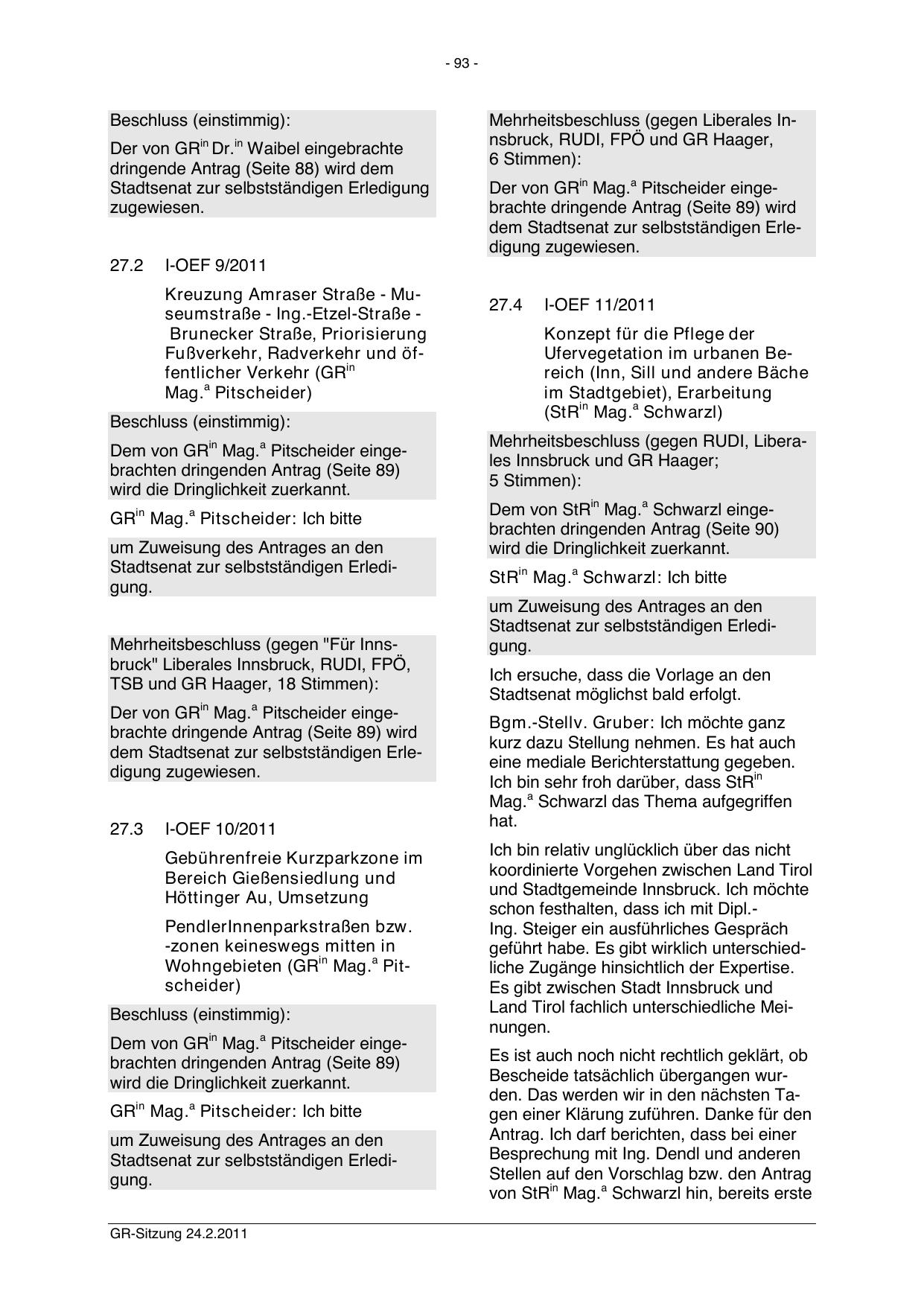 Dem von GRin Mag.a Pitscheider eingebrachten dringenden Antrag (Seite 89)