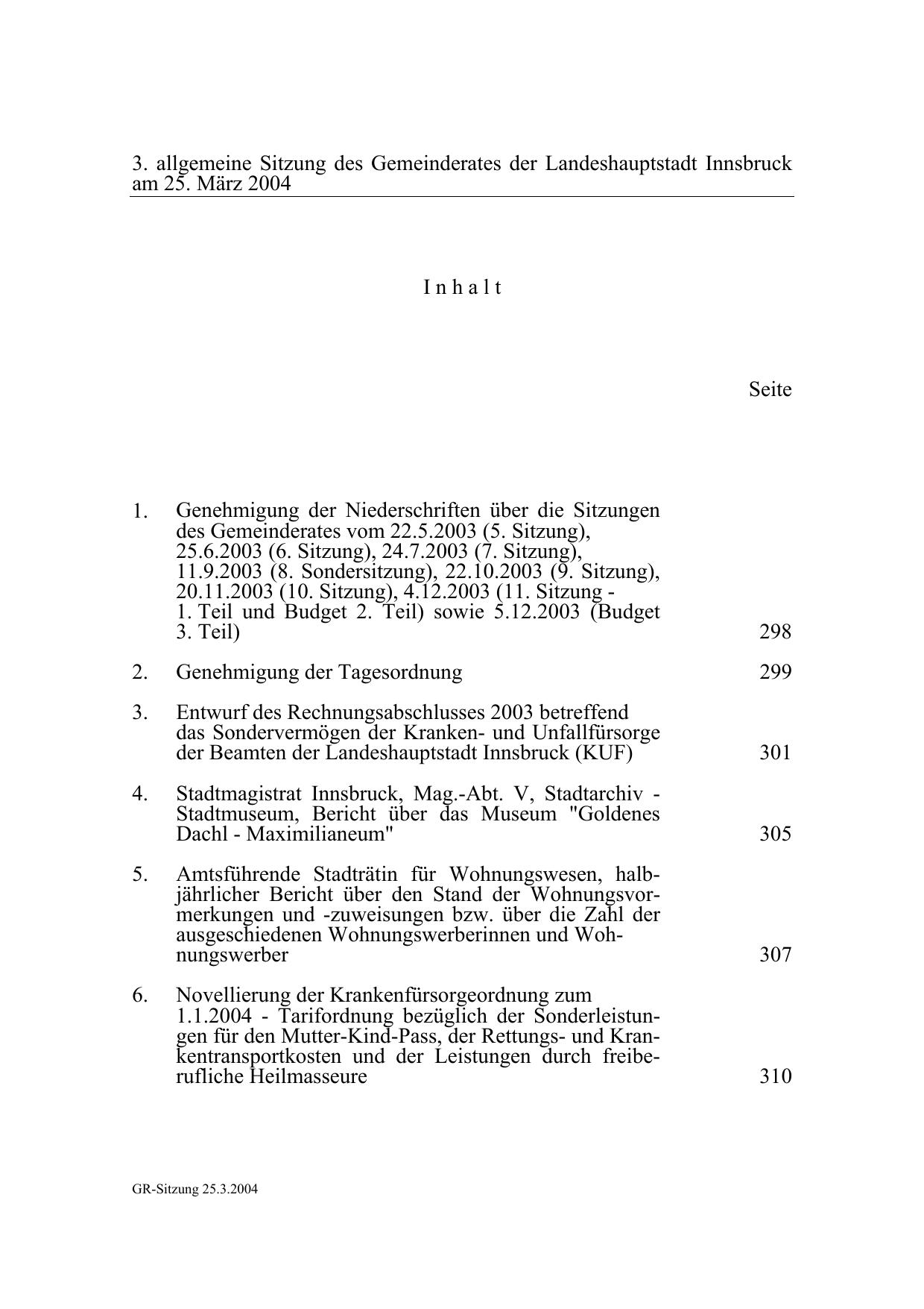 25.6.2003 (6. Sitzung), 24.7.2003 (7. Sitzung),