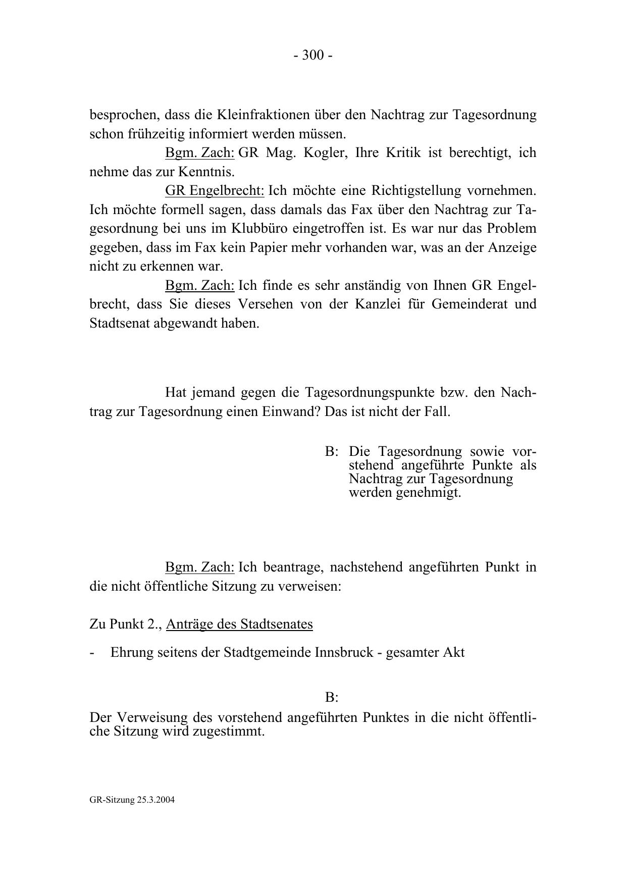 Bgm. Zach: Ich finde es sehr anständig von Ihnen GR Engelbrecht, dass Sie dieses Versehen von der Kanzlei für Gemeinderat und