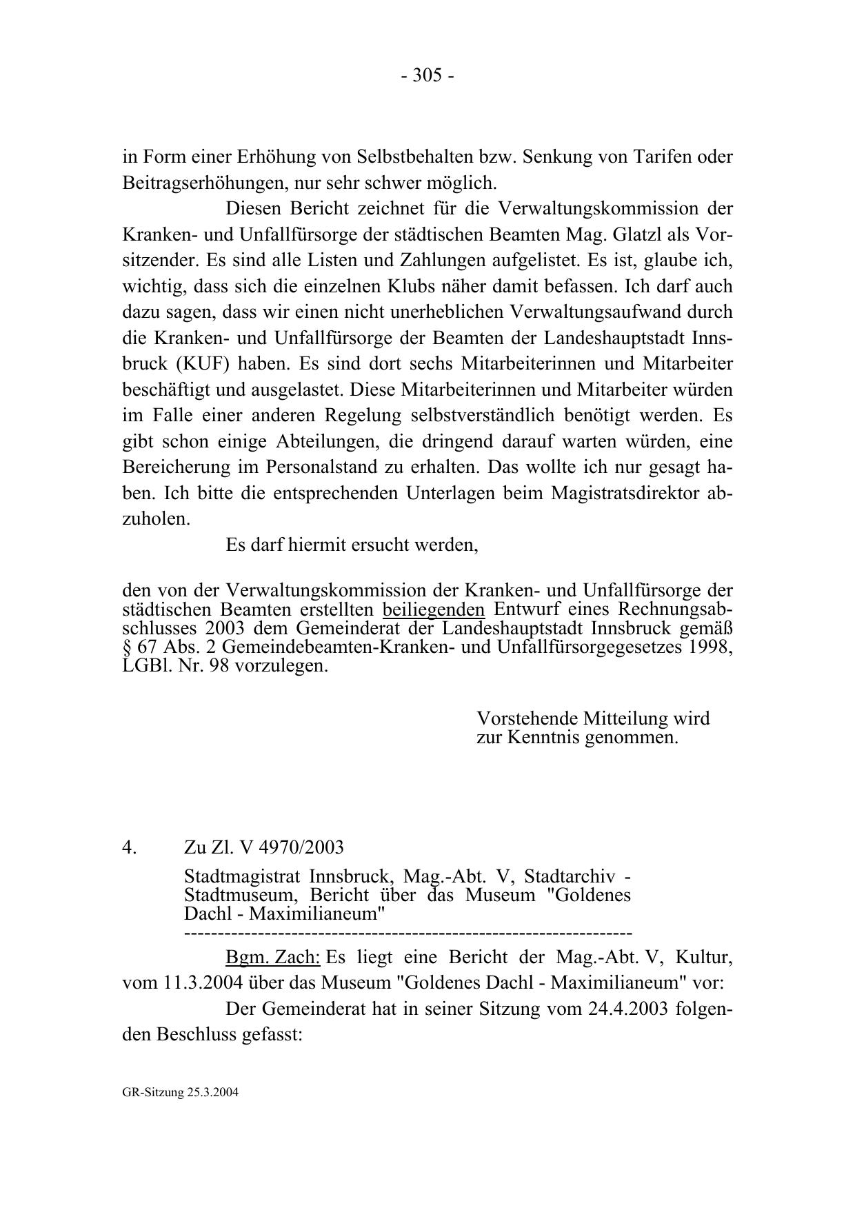 städtischen Beamten erstellten beiliegenden Entwurf eines Rechnungsabschlusses 2003 dem Gemeinderat der Landeshauptstadt Innsbruck gemäß