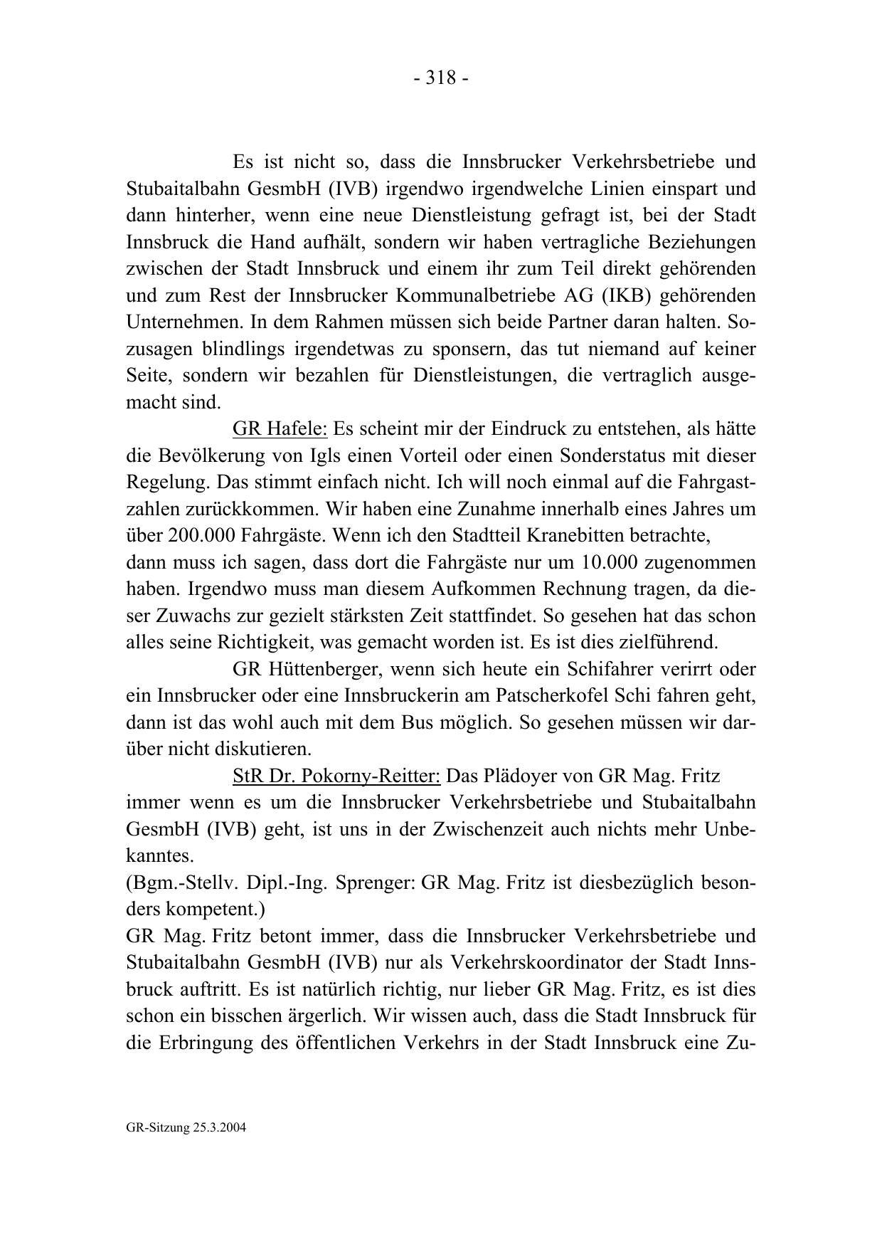 Stubaitalbahn GesmbH (IVB) nur als Verkehrskoordinator der Stadt Innsbruck auftritt. Es ist natürlich richtig, nur lieber GR Mag. Fritz, es ist dies