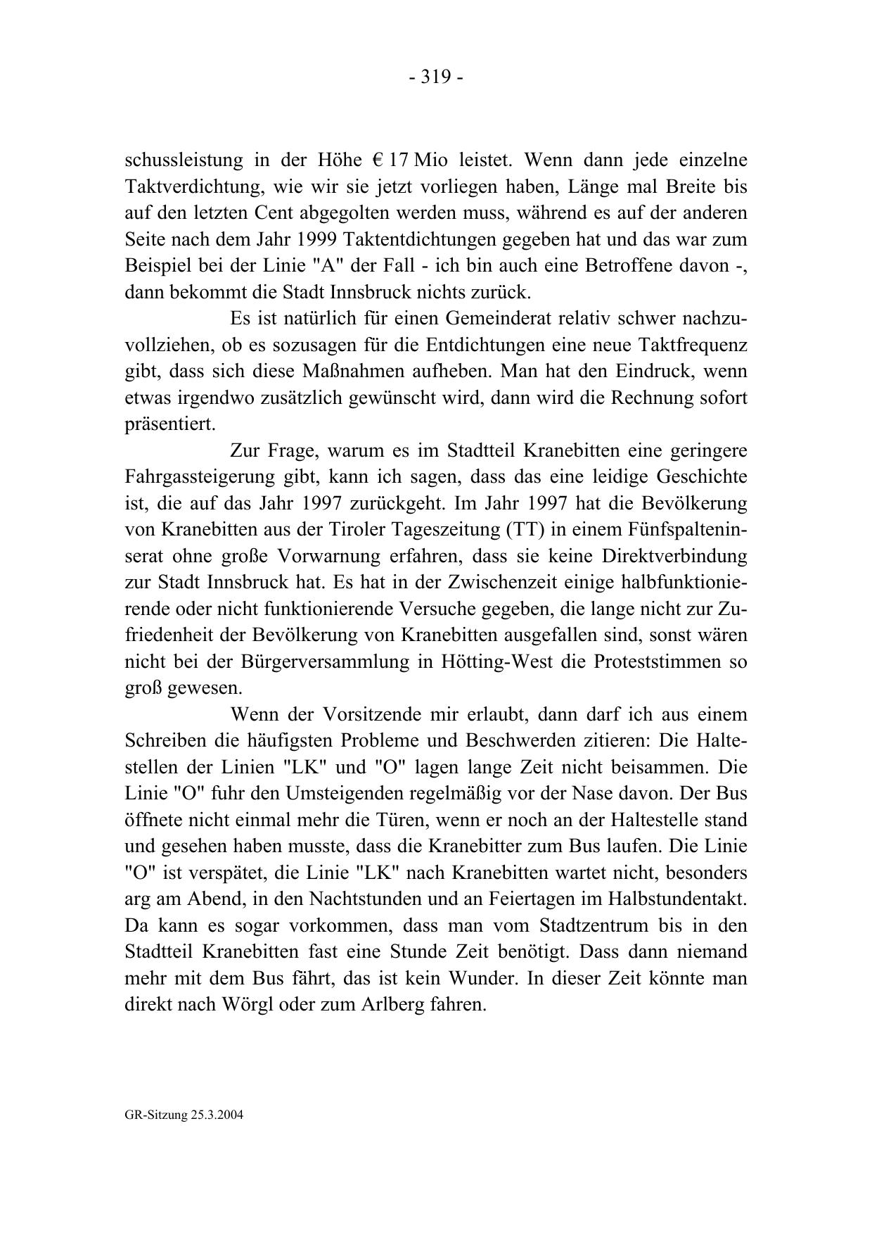 zur Stadt Innsbruck hat. Es hat in der Zwischenzeit einige halbfunktionierende oder nicht funktionierende Versuche gegeben, die lange nicht zur Zufriedenheit der Bevölkerung von Kranebitten ausgefallen sind, sonst wären