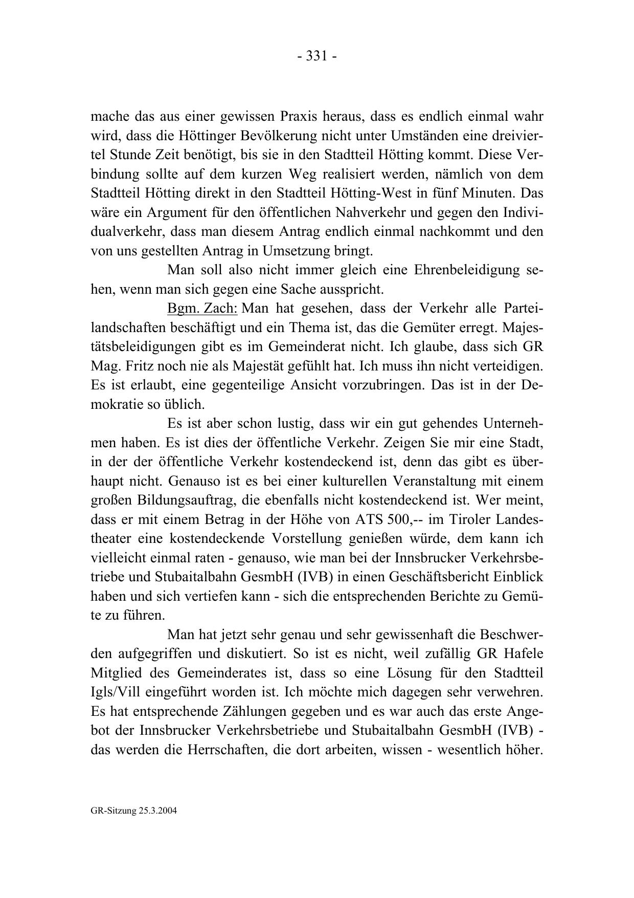 Bgm. Zach: Man hat gesehen, dass der Verkehr alle Parteilandschaften beschäftigt und ein Thema ist, das die Gemüter erregt. Majestätsbeleidigungen gibt es im Gemeinderat nicht. Ich glaube, dass sich GR