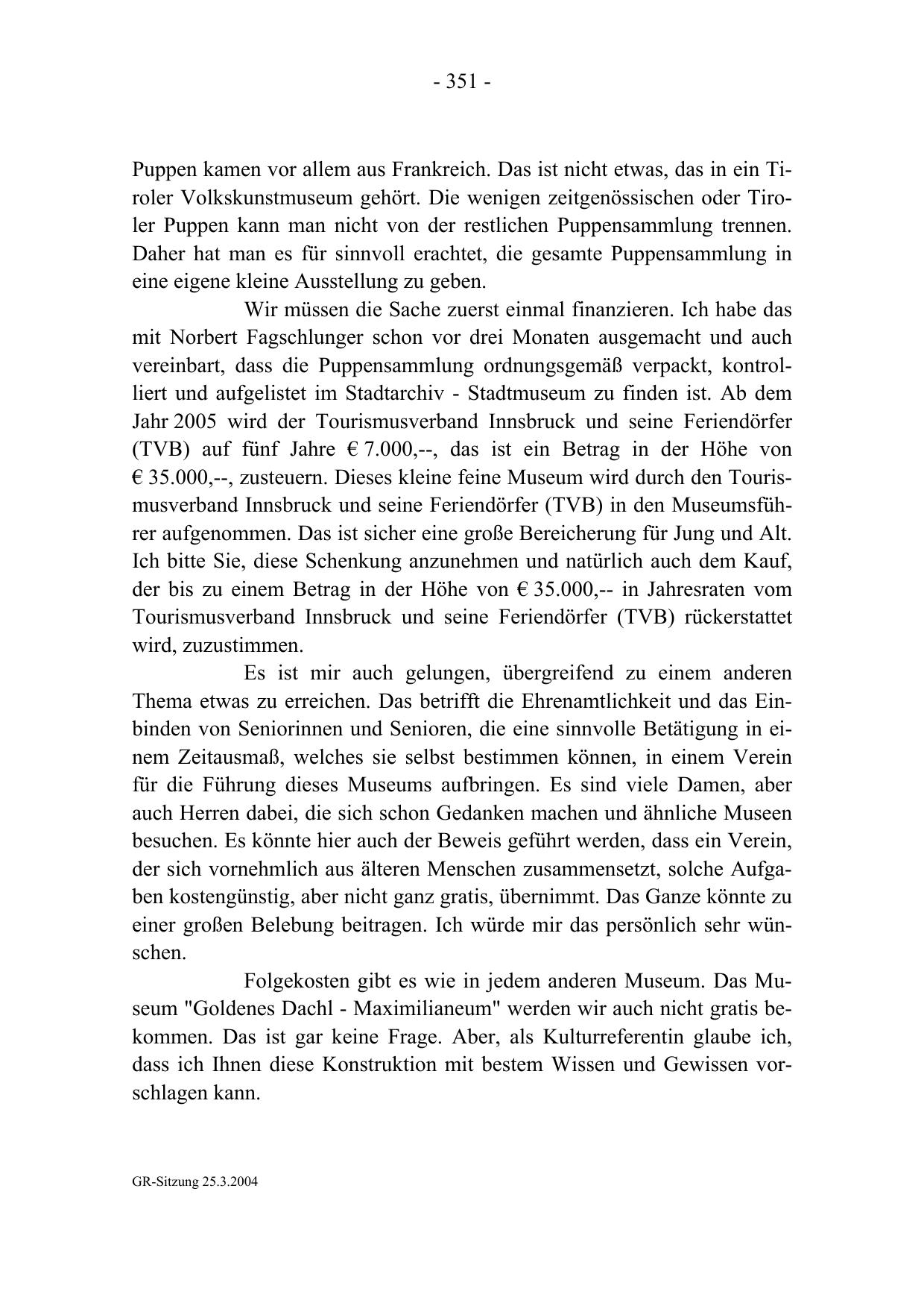 Folgekosten gibt es wie in jedem anderen Museum. Das Museum "Goldenes Dachl - Maximilianeum" werden wir auch nicht gratis bekommen. Das ist gar keine Frage. Aber, als Kulturreferentin glaube ich,