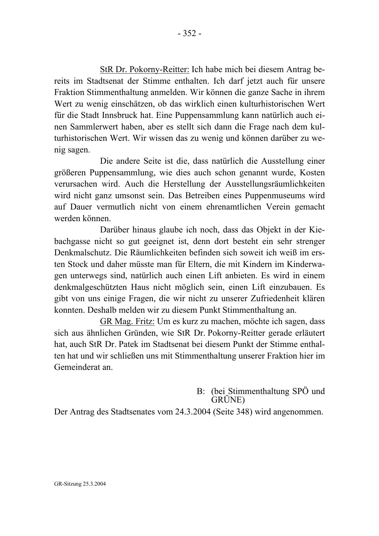 Der Antrag des Stadtsenates vom 24.3.2004 (Seite 348) wird angenommen.