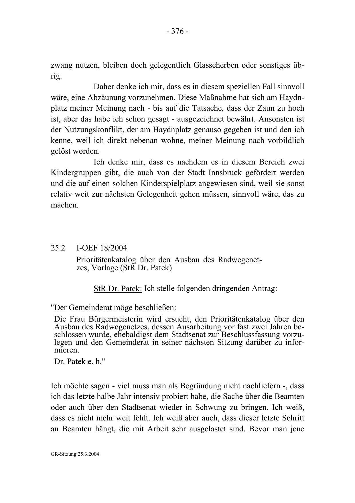 StR Dr. Patek: Ich stelle folgenden dringenden Antrag: