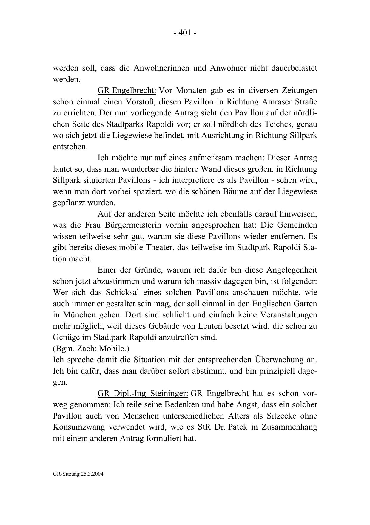 GR Dipl.-Ing. Steininger: GR Engelbrecht hat es schon vorweg genommen: Ich teile seine Bedenken und habe Angst, dass ein solcher