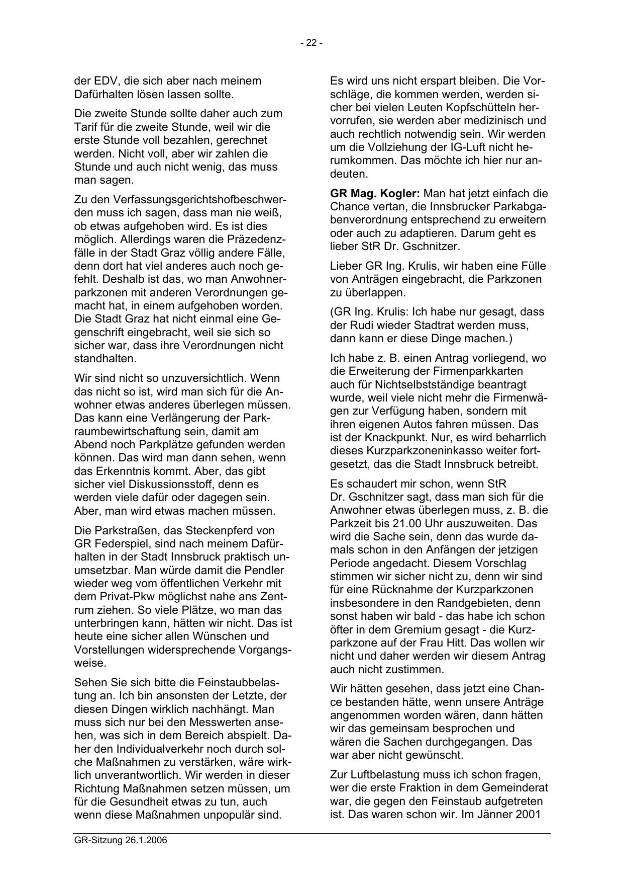 GR Federspiel, sind nach meinem Dafürhalten in der Stadt Innsbruck praktisch unumsetzbar. Man würde damit die Pendler