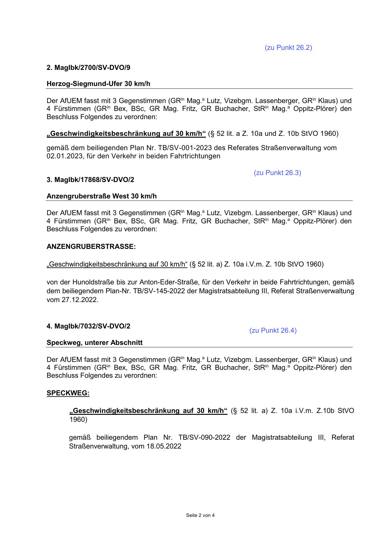 Der AfUEM fasst mit 3 Gegenstimmen (GRin Mag.a Lutz, Vizebgm. Lassenberger, GRin Klaus) und