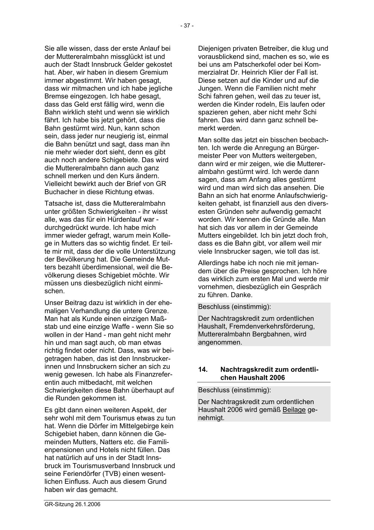 richtig findet oder nicht. Dass, was wir beigetragen haben, das ist den Innsbruckerinnen und Innsbruckern sicher an sich zu