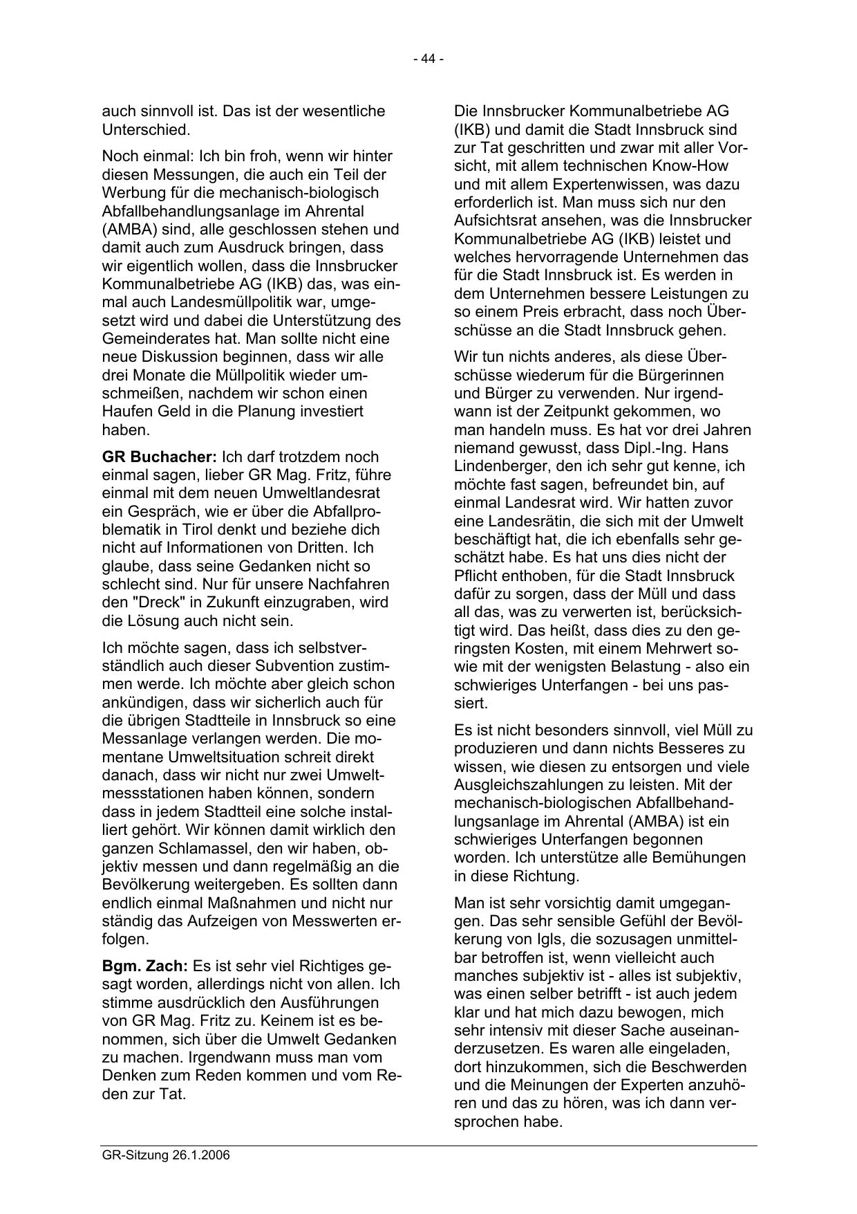 Bgm. Zach: Es ist sehr viel Richtiges gesagt worden, allerdings nicht von allen. Ich