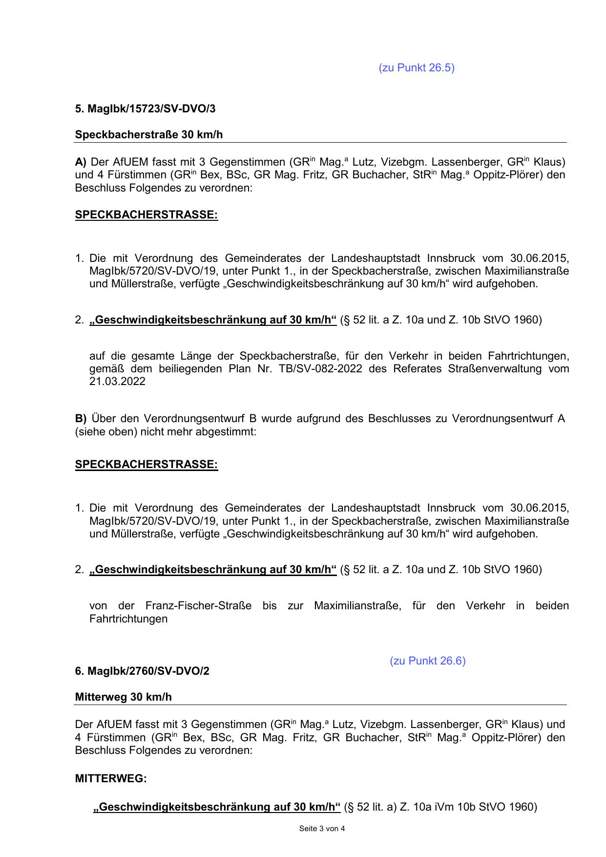 A) Der AfUEM fasst mit 3 Gegenstimmen (GRin Mag.a Lutz, Vizebgm. Lassenberger, GRin Klaus)
