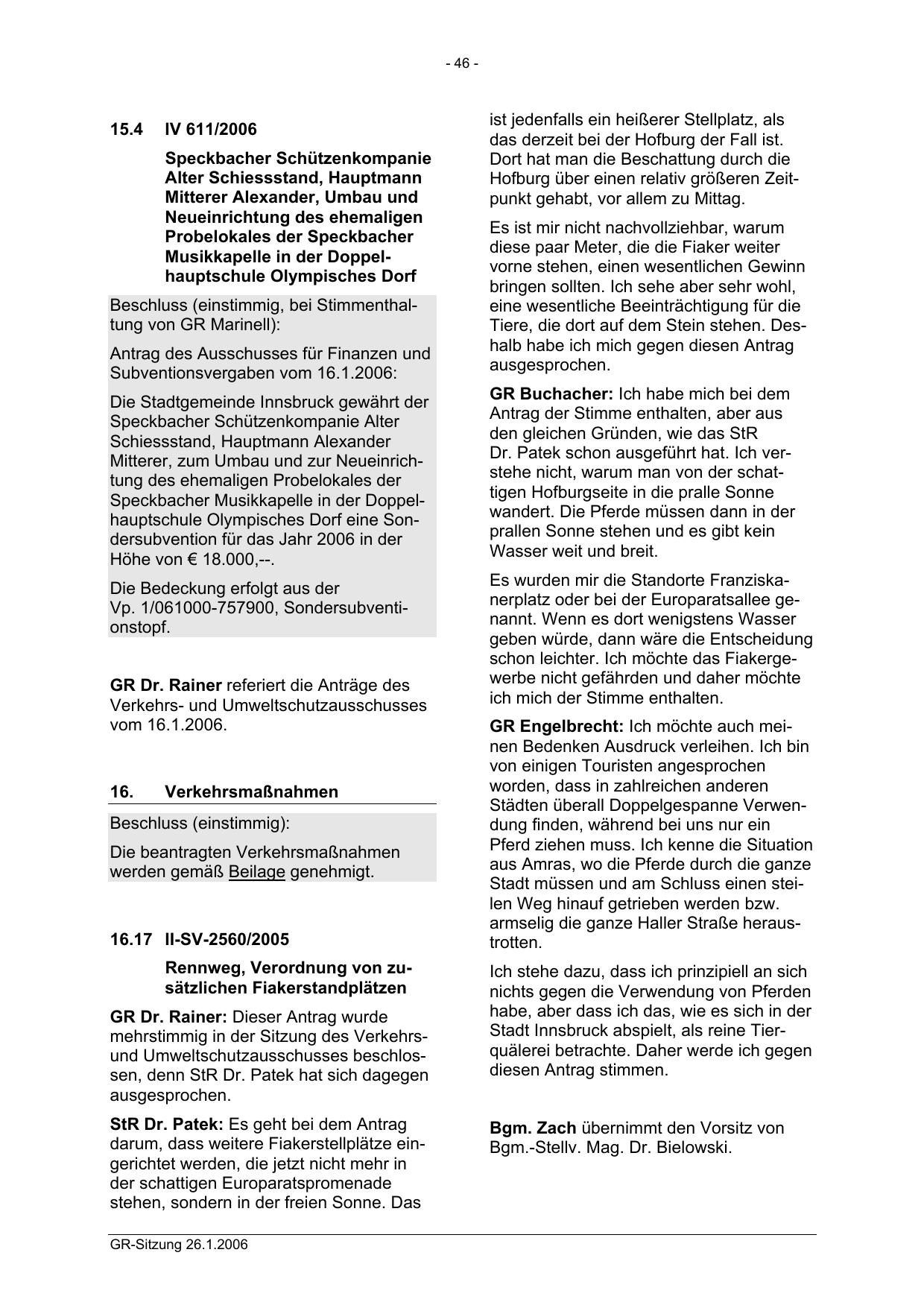 mehrstimmig in der Sitzung des Verkehrsund Umweltschutzausschusses beschlossen, denn StR Dr. Patek hat sich dagegen