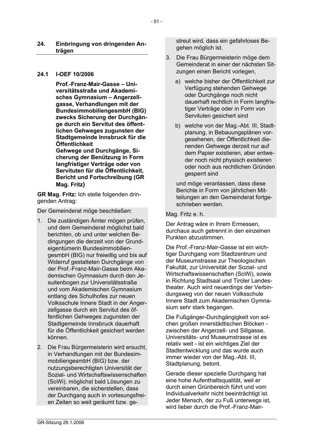 Prof.-Franz-Mair-Gasse – Universitätsstraße und Akademisches Gymnasium – Angerzellgasse, Verhandlungen mit der