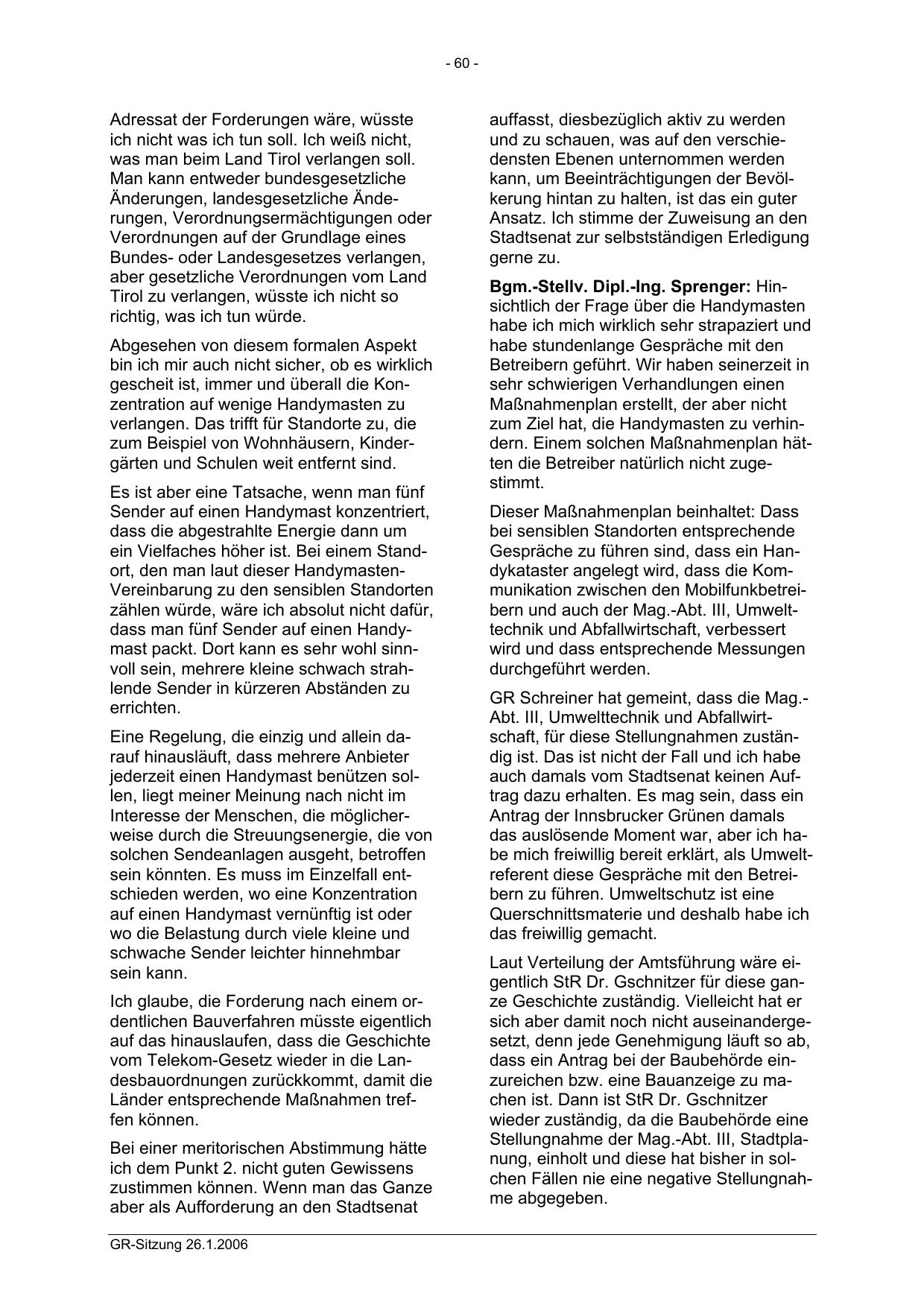 Gespräche zu führen sind, dass ein Handykataster angelegt wird, dass die Kommunikation zwischen den Mobilfunkbetreibern und auch der Mag.-Abt. III, Umwelttechnik und Abfallwirtschaft, verbessert