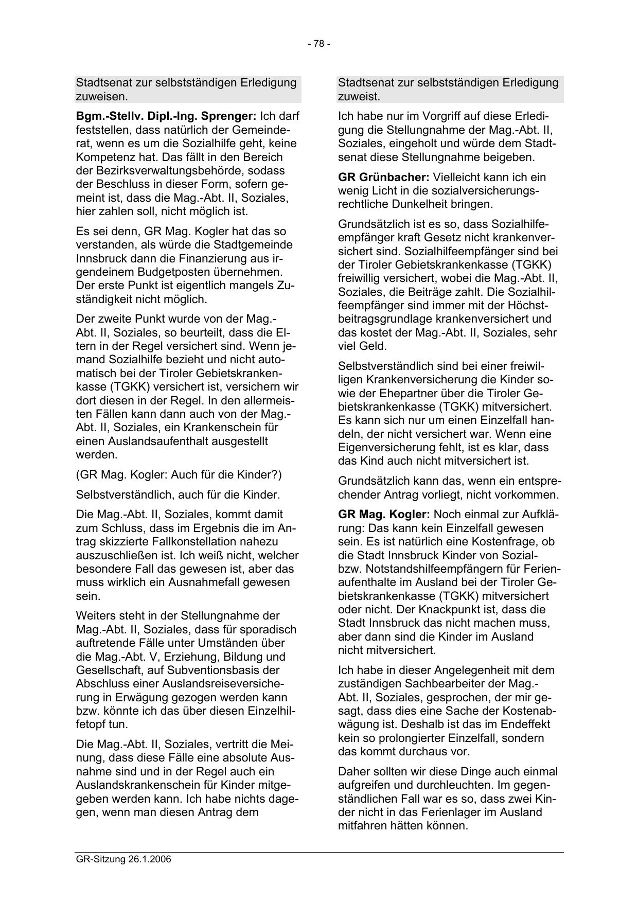 Der zweite Punkt wurde von der Mag.Abt. II, Soziales, so beurteilt, dass die Eltern in der Regel versichert sind. Wenn jemand Sozialhilfe bezieht und nicht automatisch bei der Tiroler Gebietskrankenkasse (TGKK) versichert ist, versichern wir
