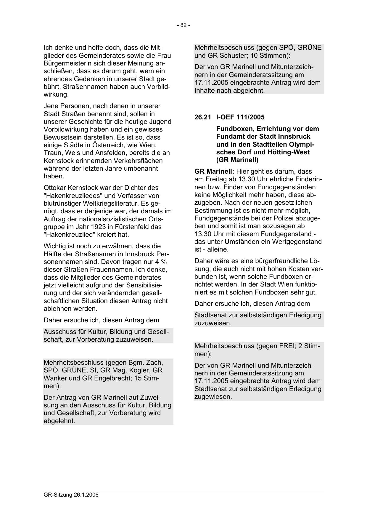 Der von GR Marinell und Mitunterzeichnern in der Gemeinderatssitzung am