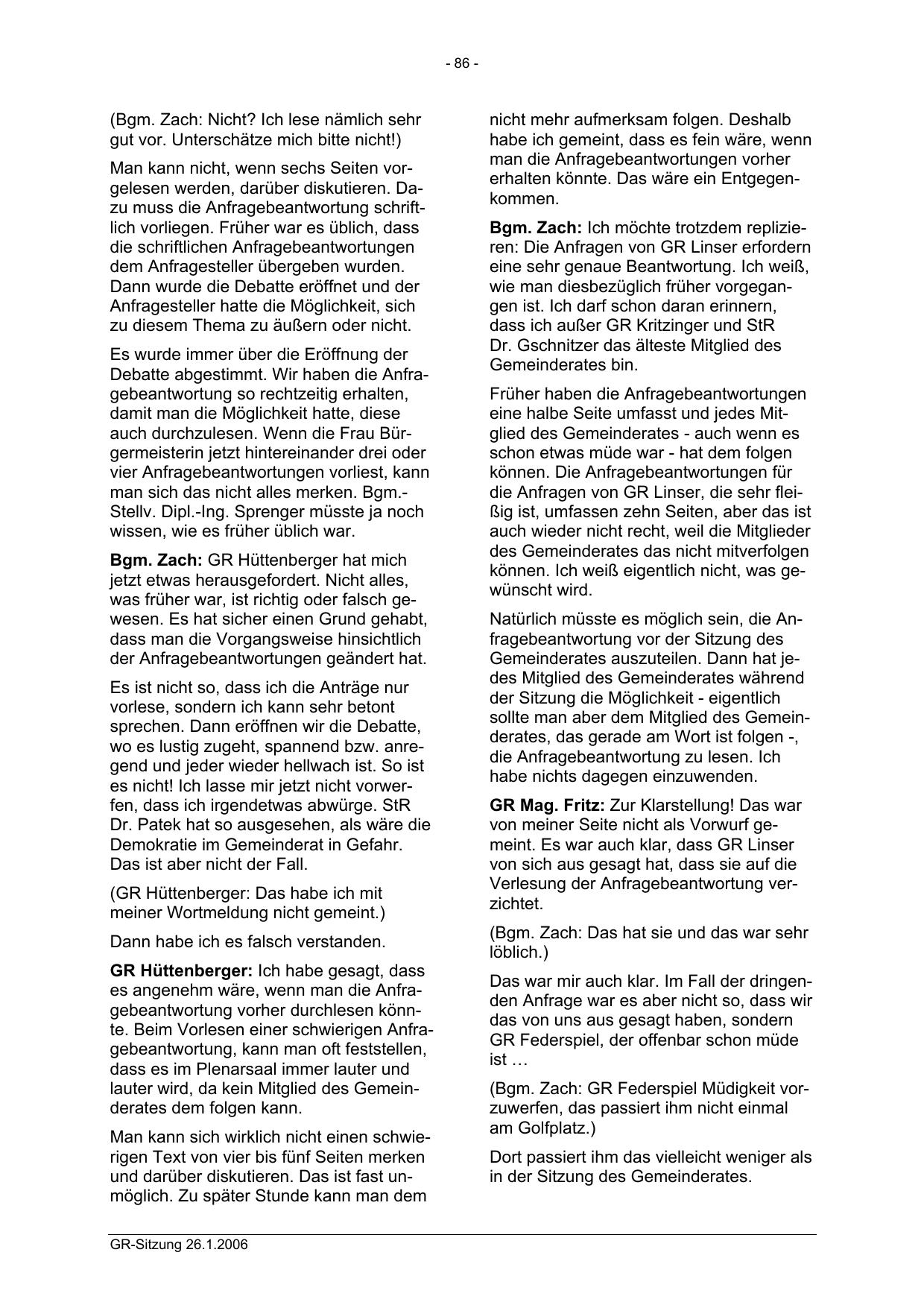 Bgm. Zach: Ich möchte trotzdem replizieren: Die Anfragen von GR Linser erfordern