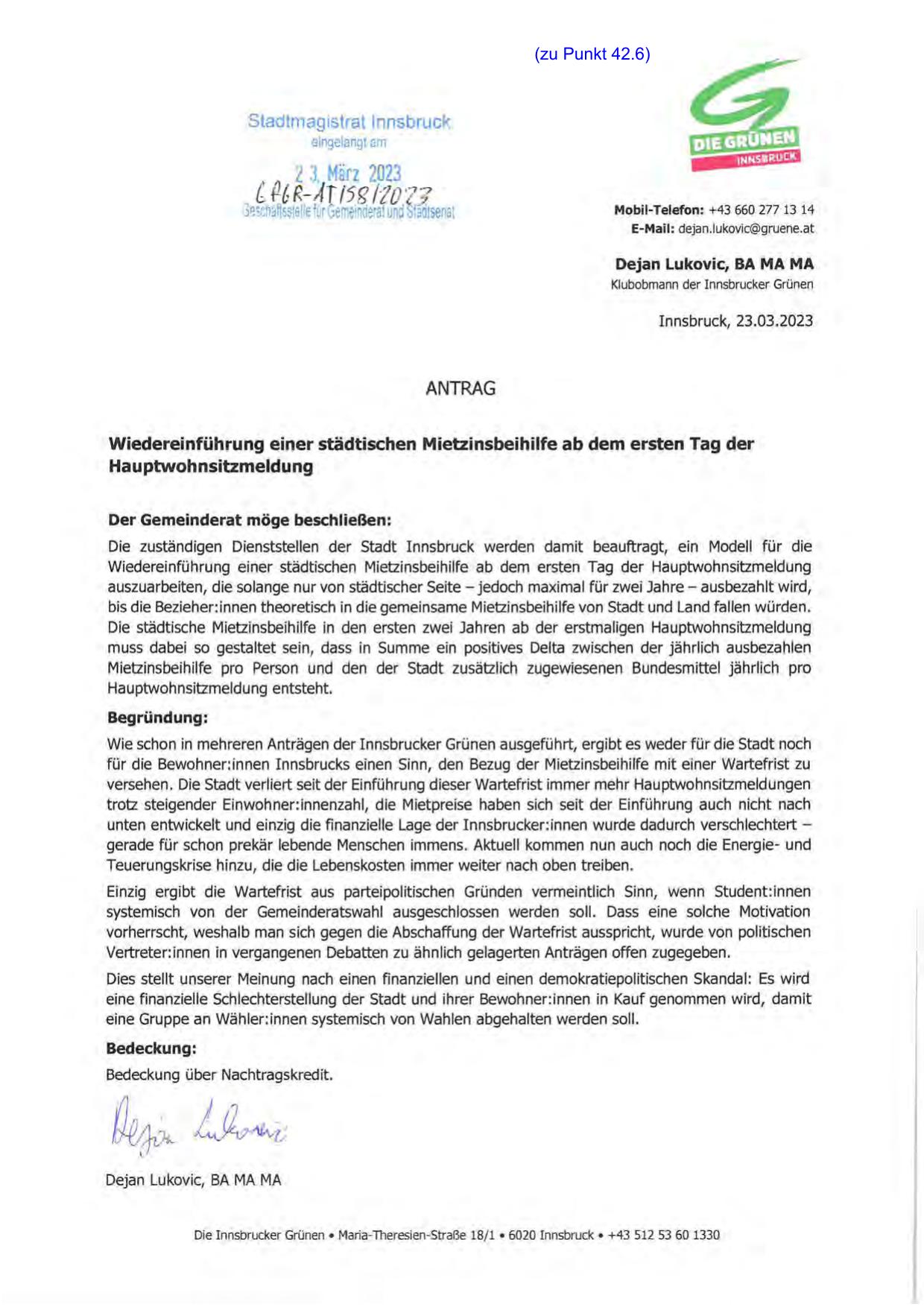 für die Bewohner:innen Innsbrucks einen Sinn, den Bezug der Mietzinsbeihilfe mit einer Wartefrist zu