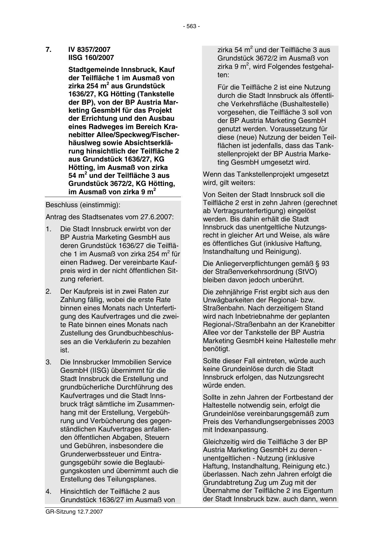 Kaufvertrages und die Stadt Innsbruck trägt sämtliche im Zusammenhang mit der Erstellung, Vergebührung und Verbücherung des gegenständlichen Kaufvertrages anfallenden öffentlichen Abgaben, Steuern