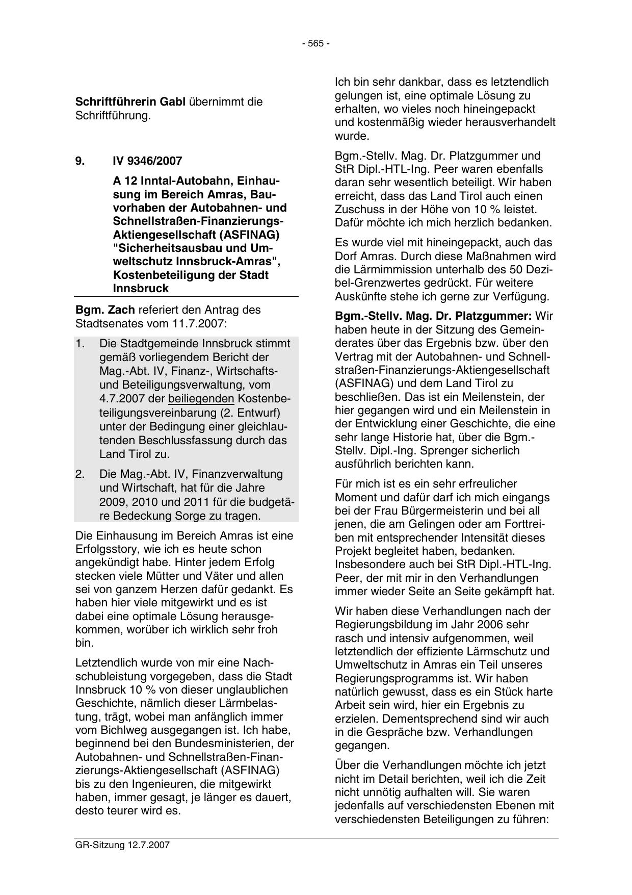 Bgm.-Stellv. Mag. Dr. Platzgummer: Wir