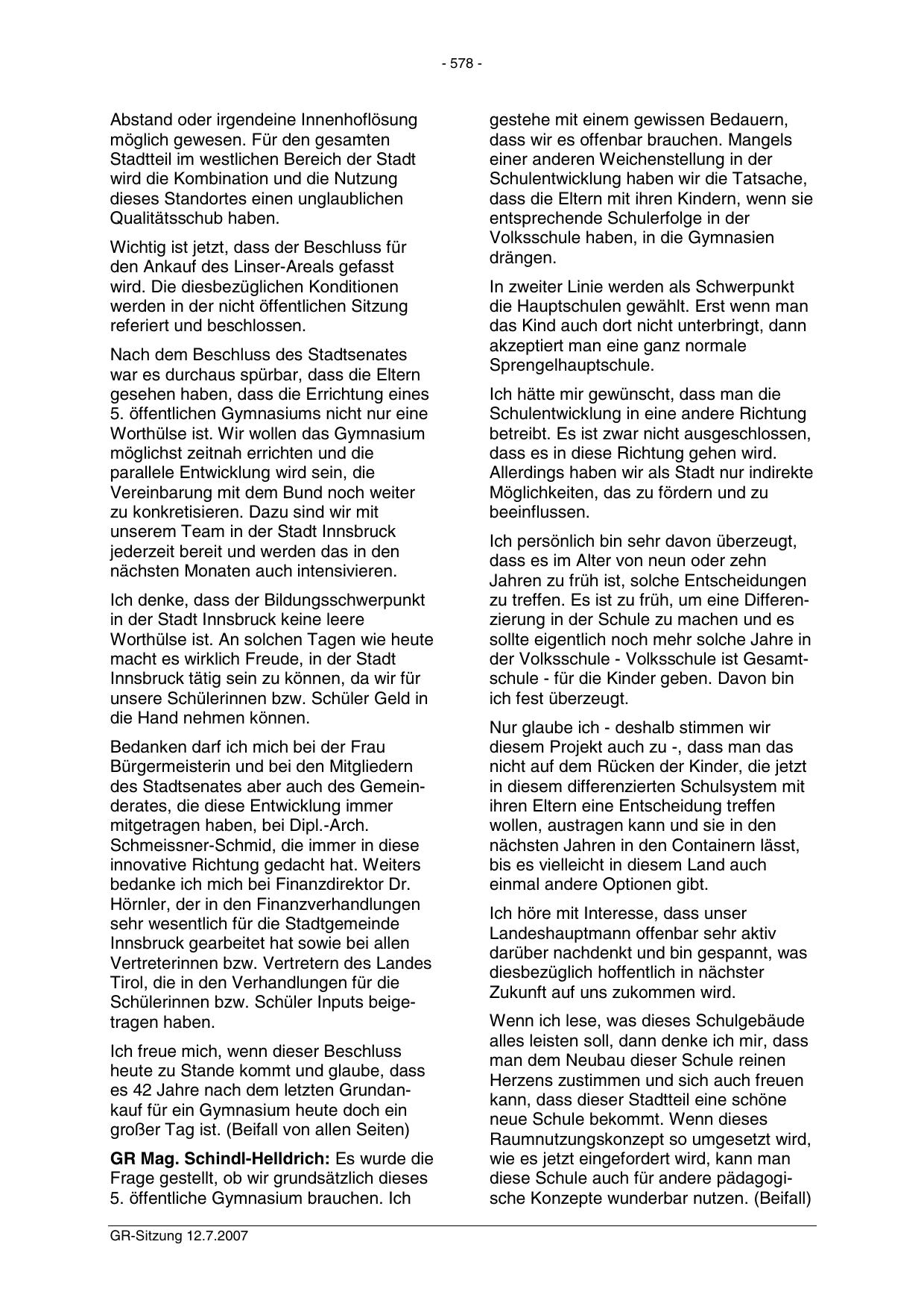 des Stadtsenates aber auch des Gemeinderates, die diese Entwicklung immer