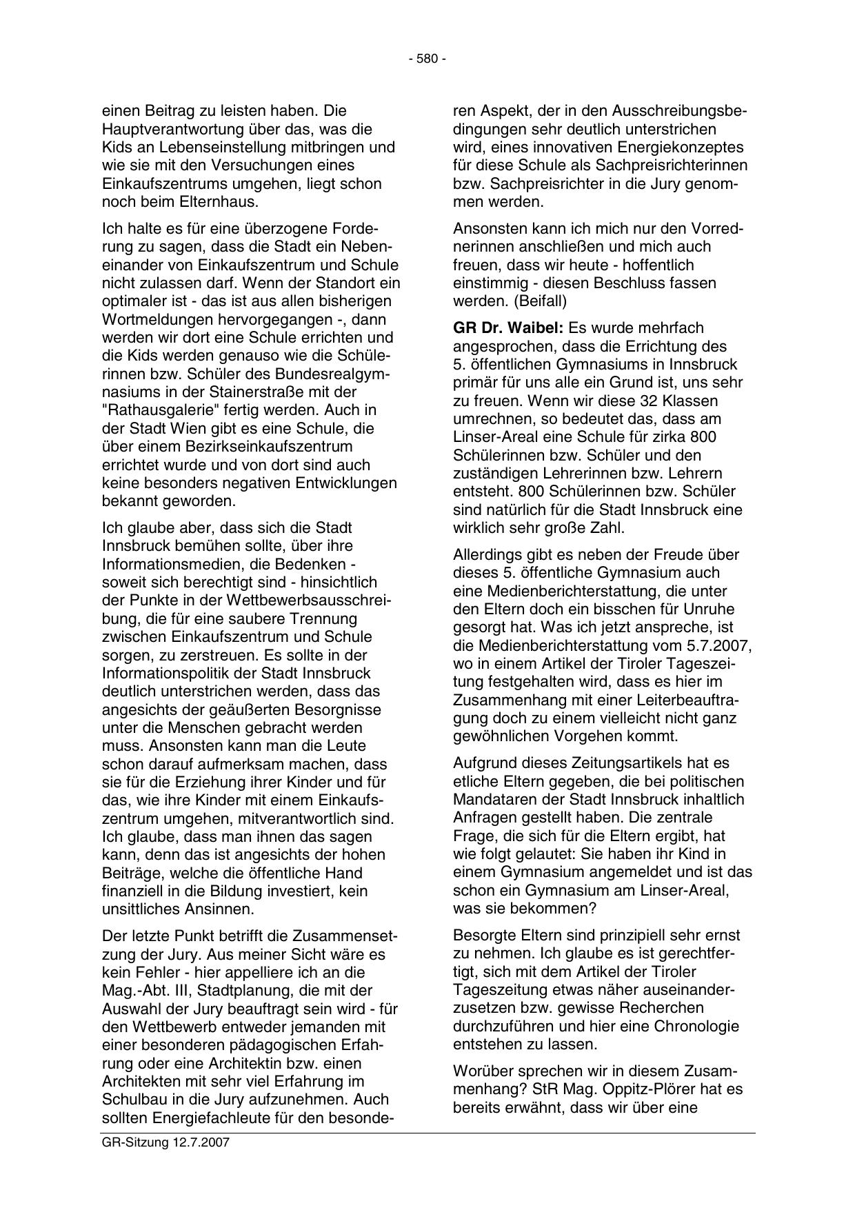 sollten Energiefachleute für den besondeGR-Sitzung 12.7.2007