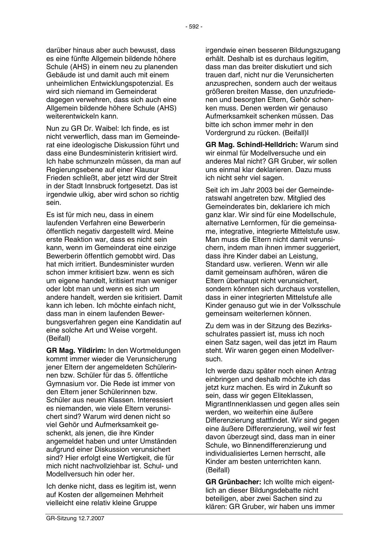 GR Grünbacher: Ich wollte mich eigentlich an dieser Bildungsdebatte nicht