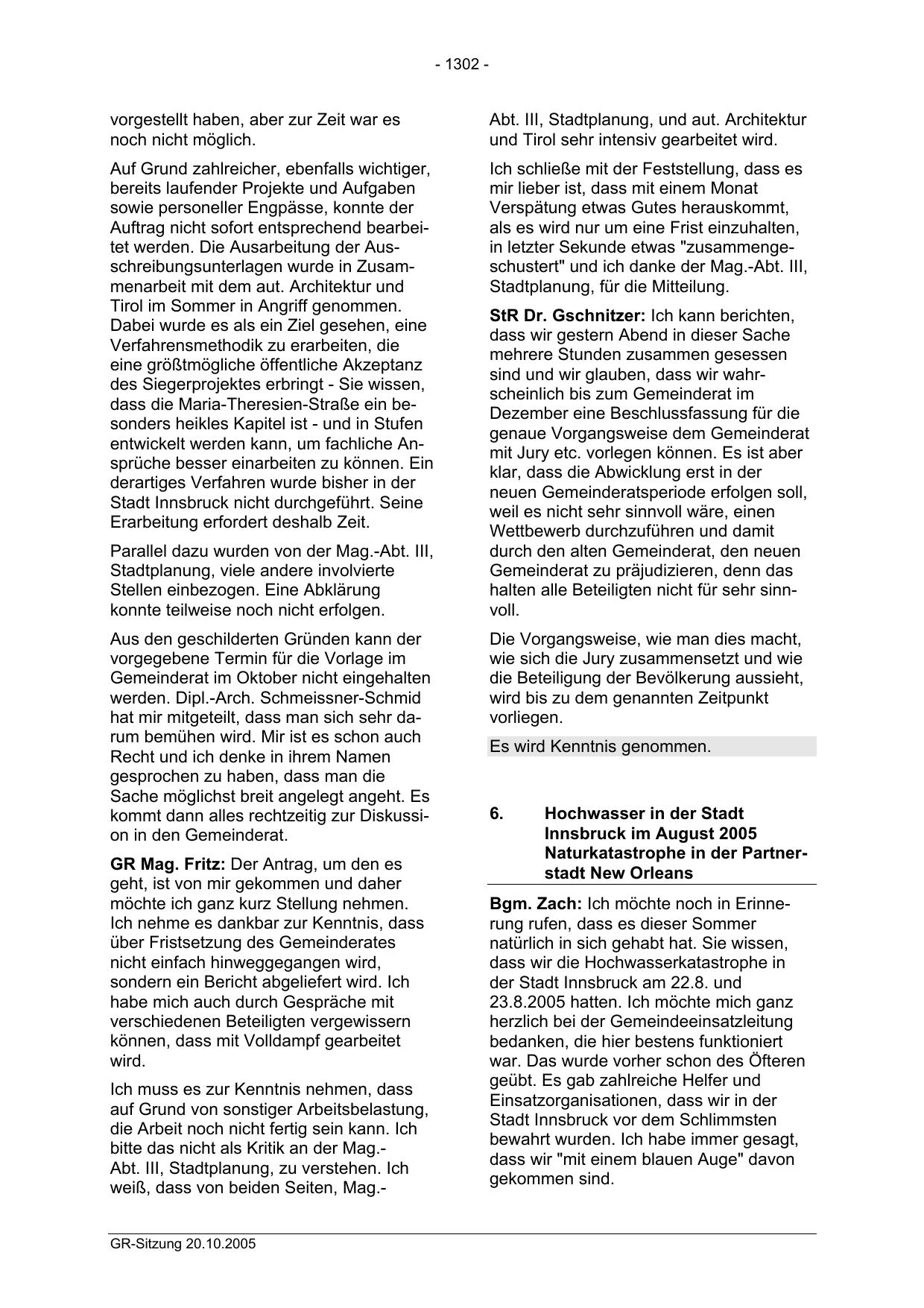 weiß, dass von beiden Seiten, Mag.GR-Sitzung 20.10.2005