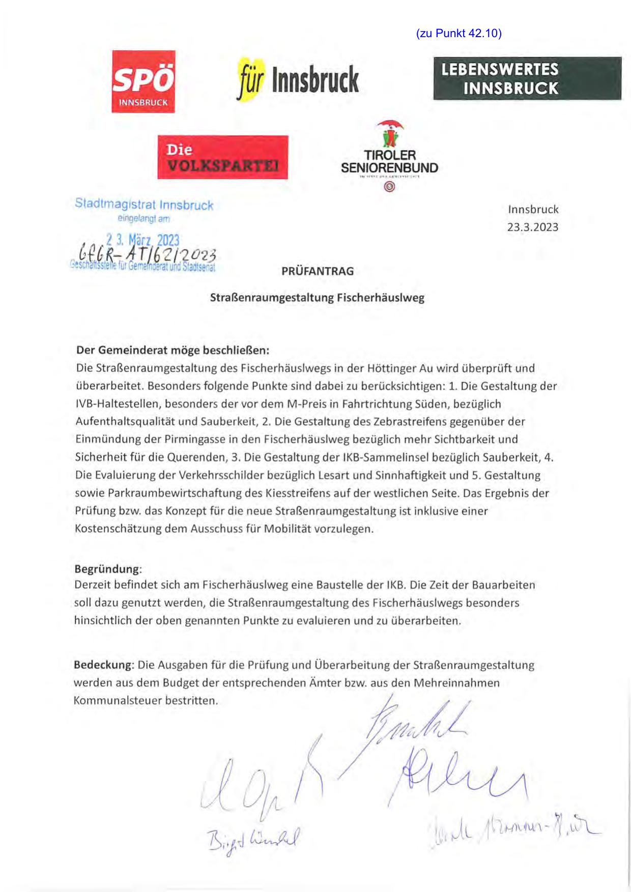soll dazu genutzt werden, die Straßenraumgestaltung des Fischerhäuslwegs besonders