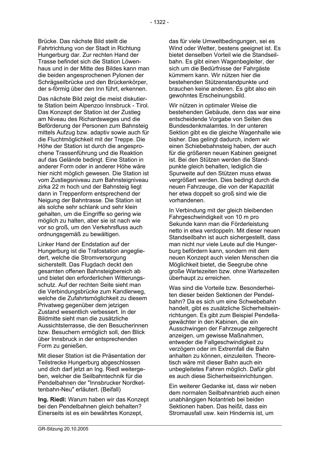 Pendelbahnen der "Innsbrucker Nordkettenbahn-Neu" erläutert. (Beifall)