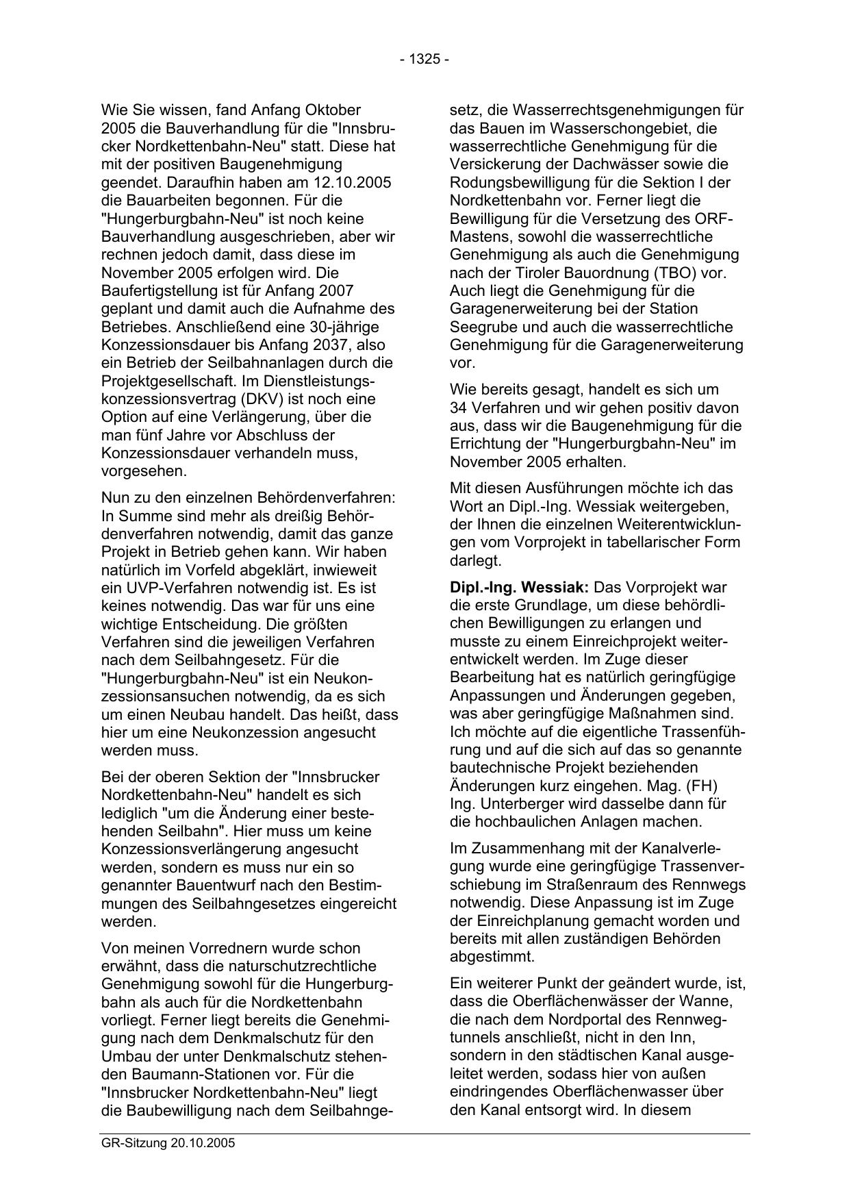 die Baubewilligung nach dem SeilbahngeGR-Sitzung 20.10.2005