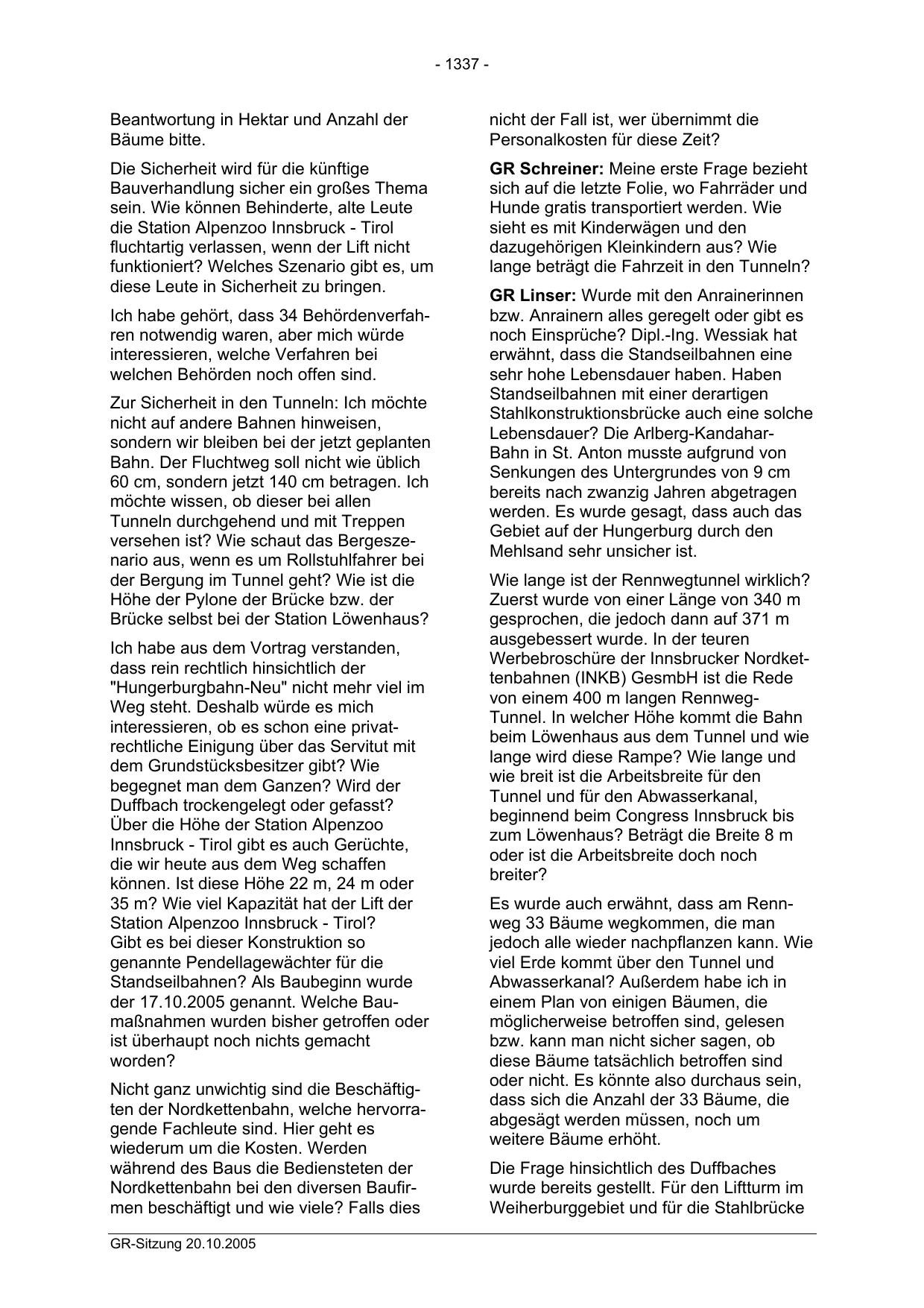 der 17.10.2005 genannt. Welche Baumaßnahmen wurden bisher getroffen oder