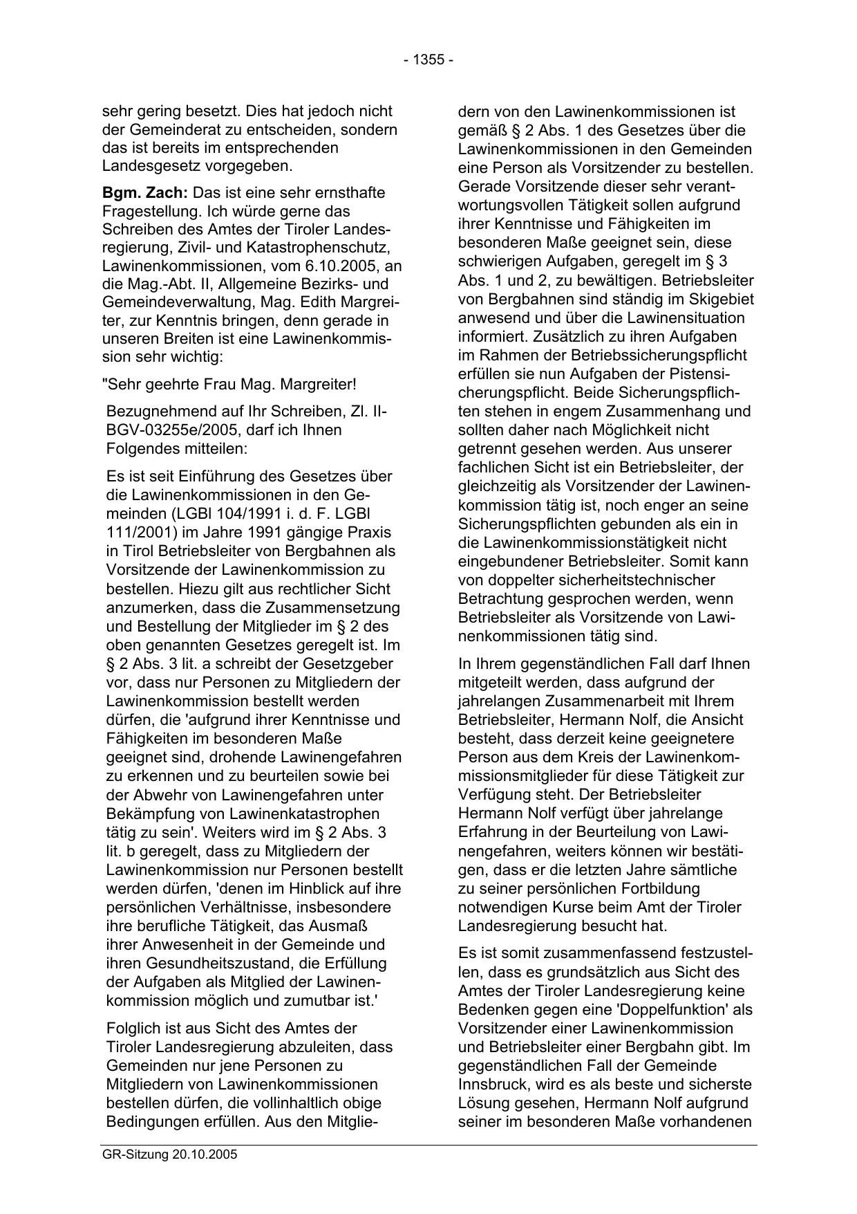 Gemeindeverwaltung, Mag. Edith Margreiter, zur Kenntnis bringen, denn gerade in
