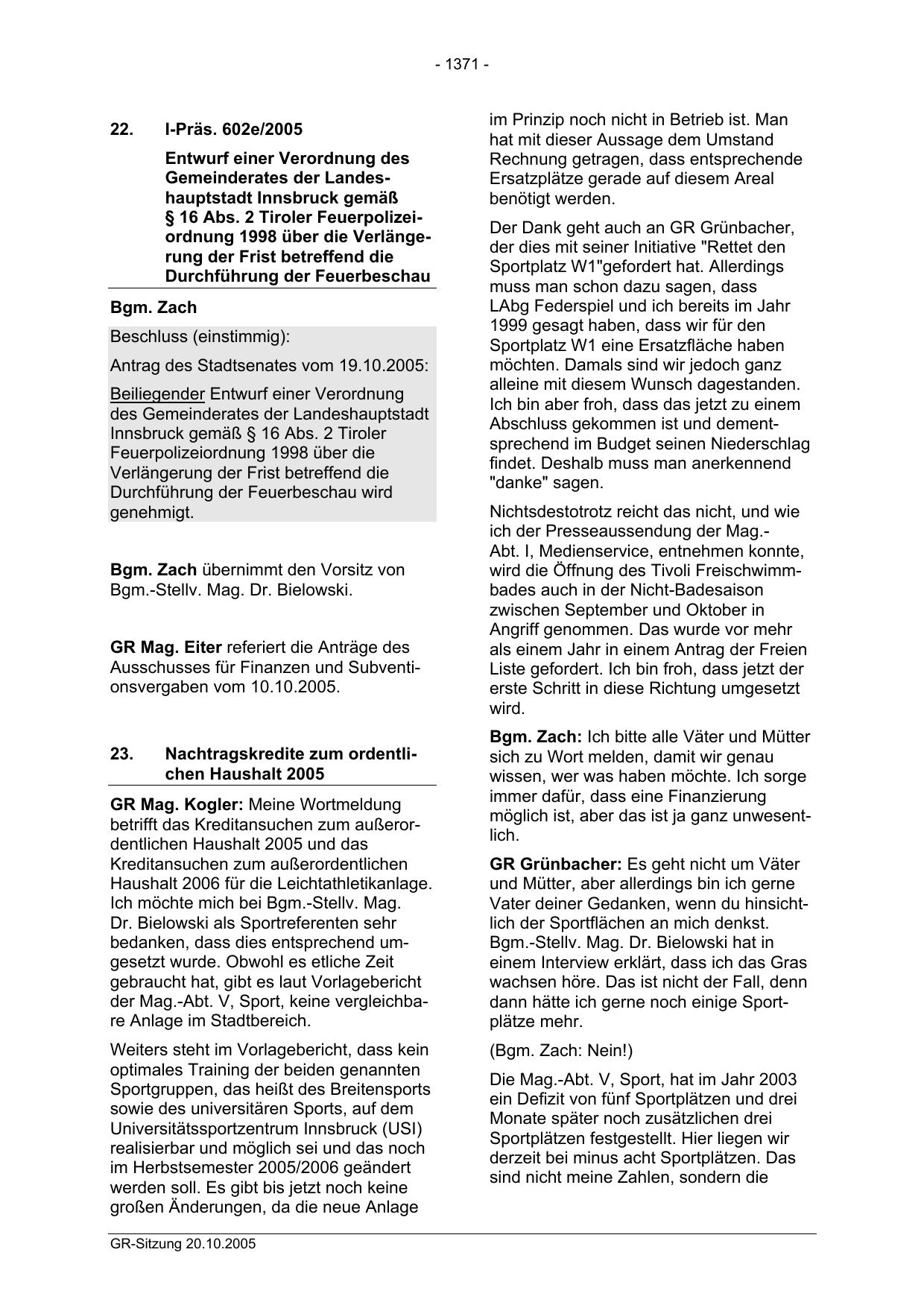 GR-Sitzung 20.10.2005