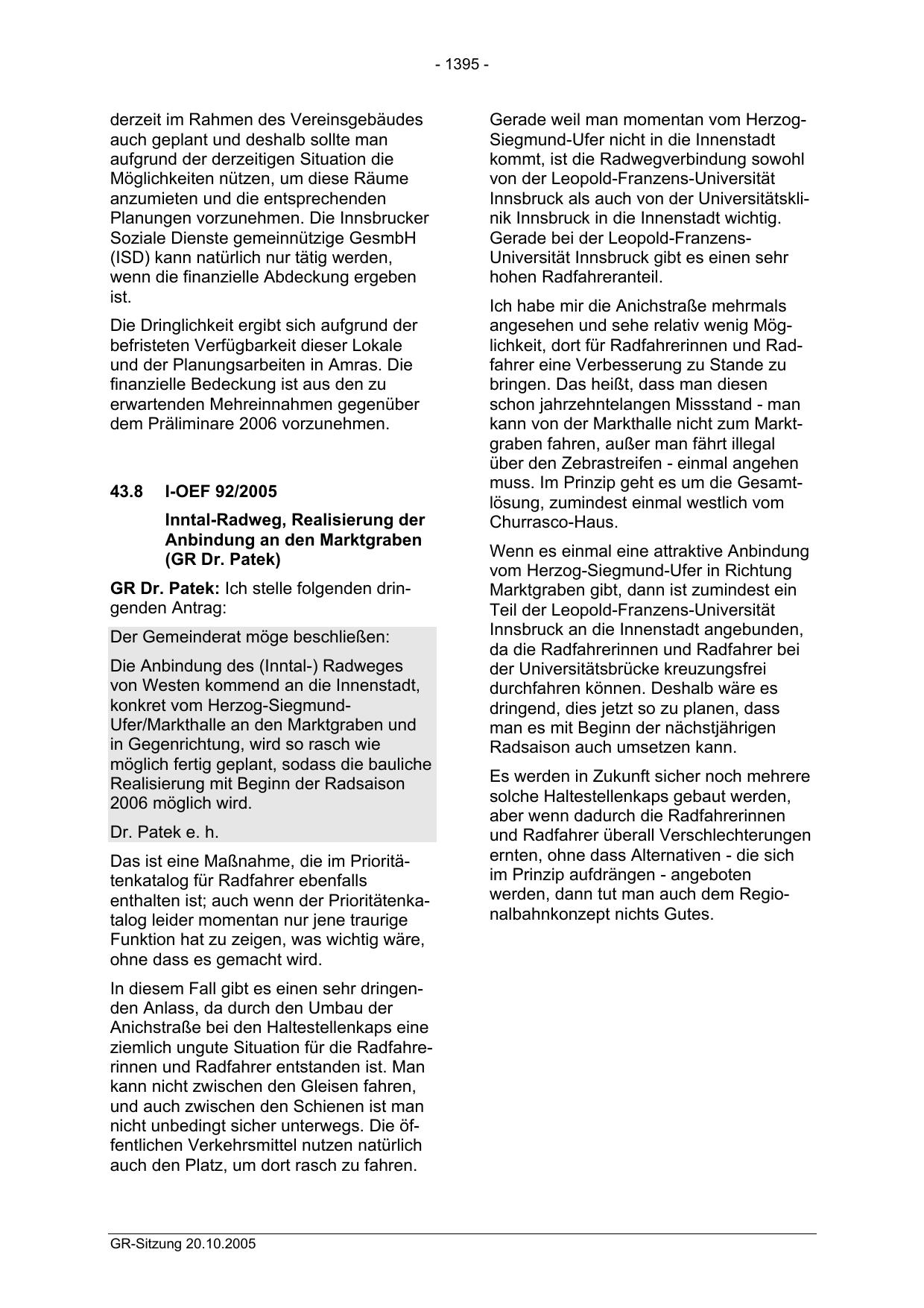 GR Dr. Patek: Ich stelle folgenden dringenden Antrag: