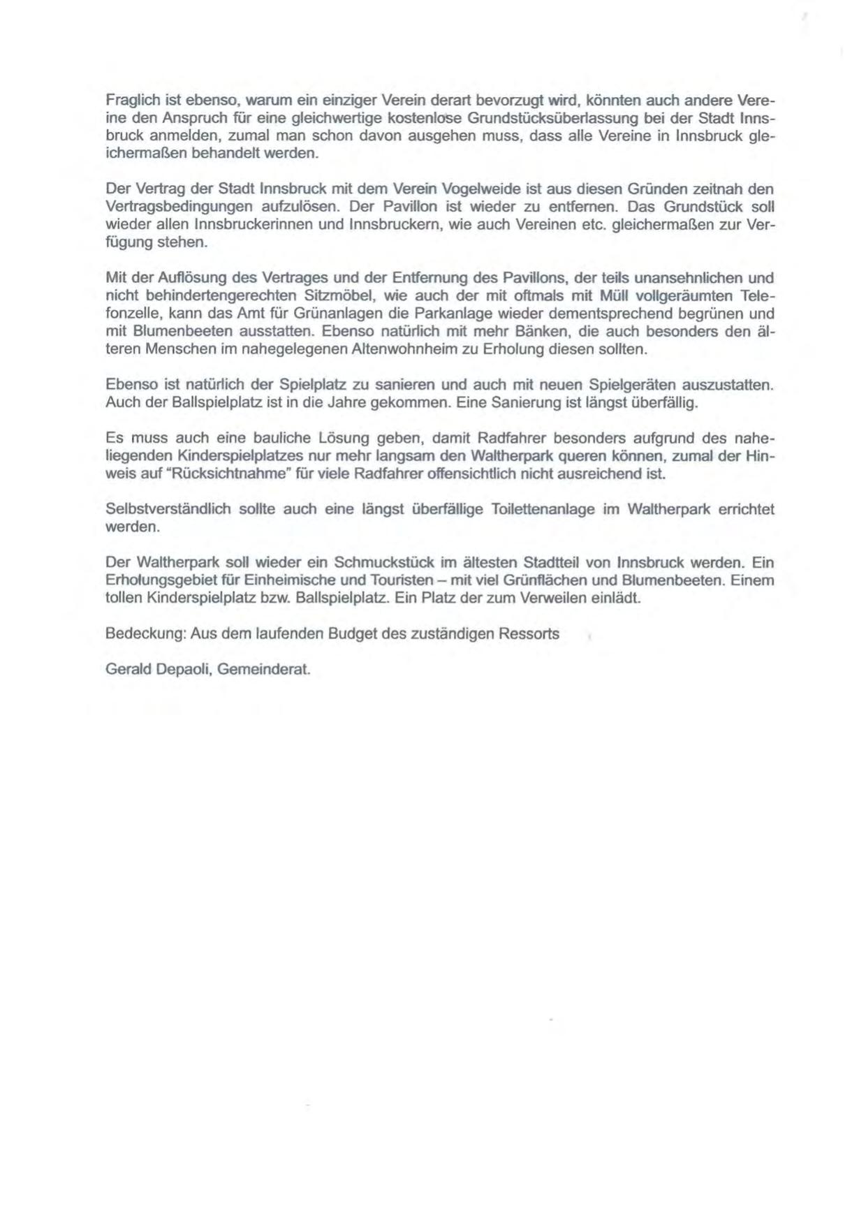 Der Vertrag der Stadt Innsbruck mit dem Verein Vogelweide ist aus diesen Gründen zeitnah den