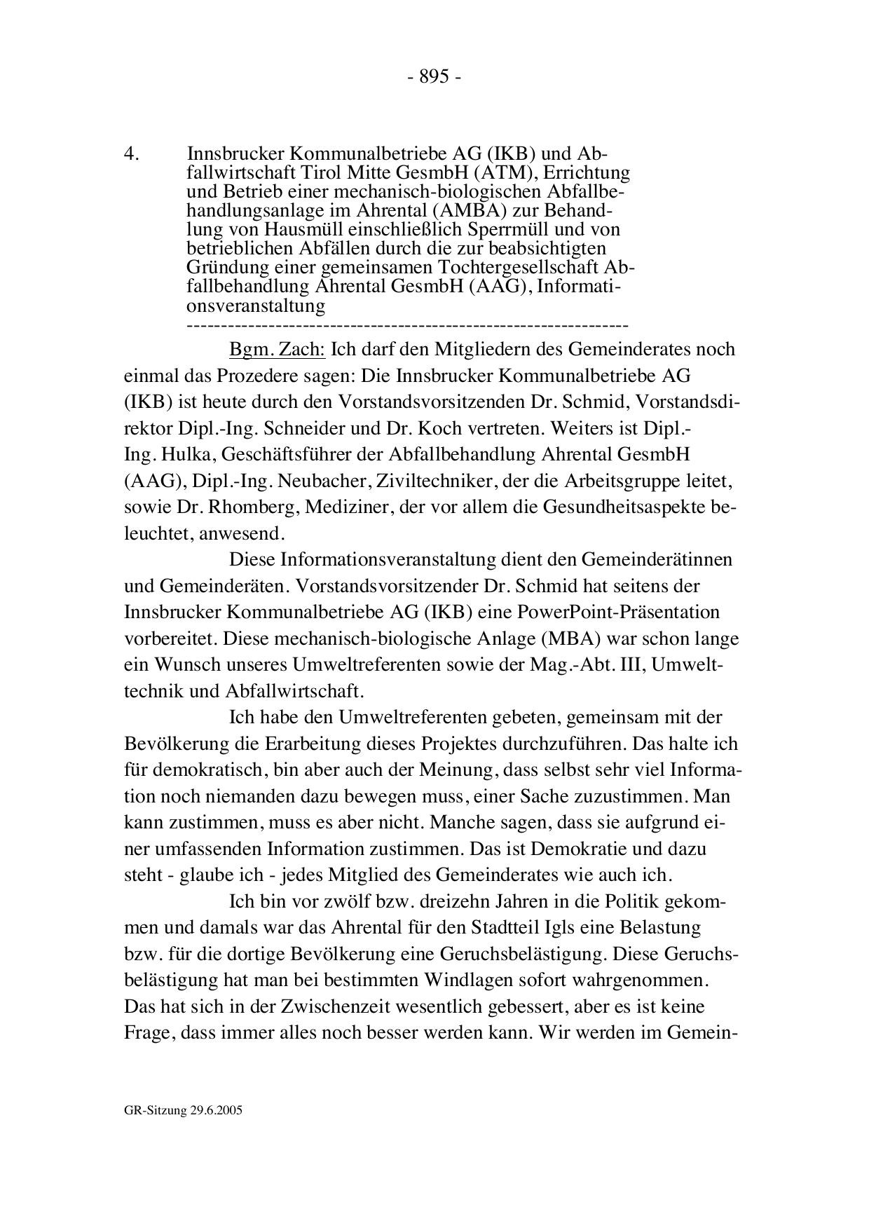 (IKB) ist heute durch den Vorstandsvorsitzenden Dr. Schmid, Vorstandsdirektor Dipl.-Ing. Schneider und Dr. Koch vertreten. Weiters ist Dipl.Ing. Hulka, Geschäftsführer der Abfallbehandlung Ahrental GesmbH