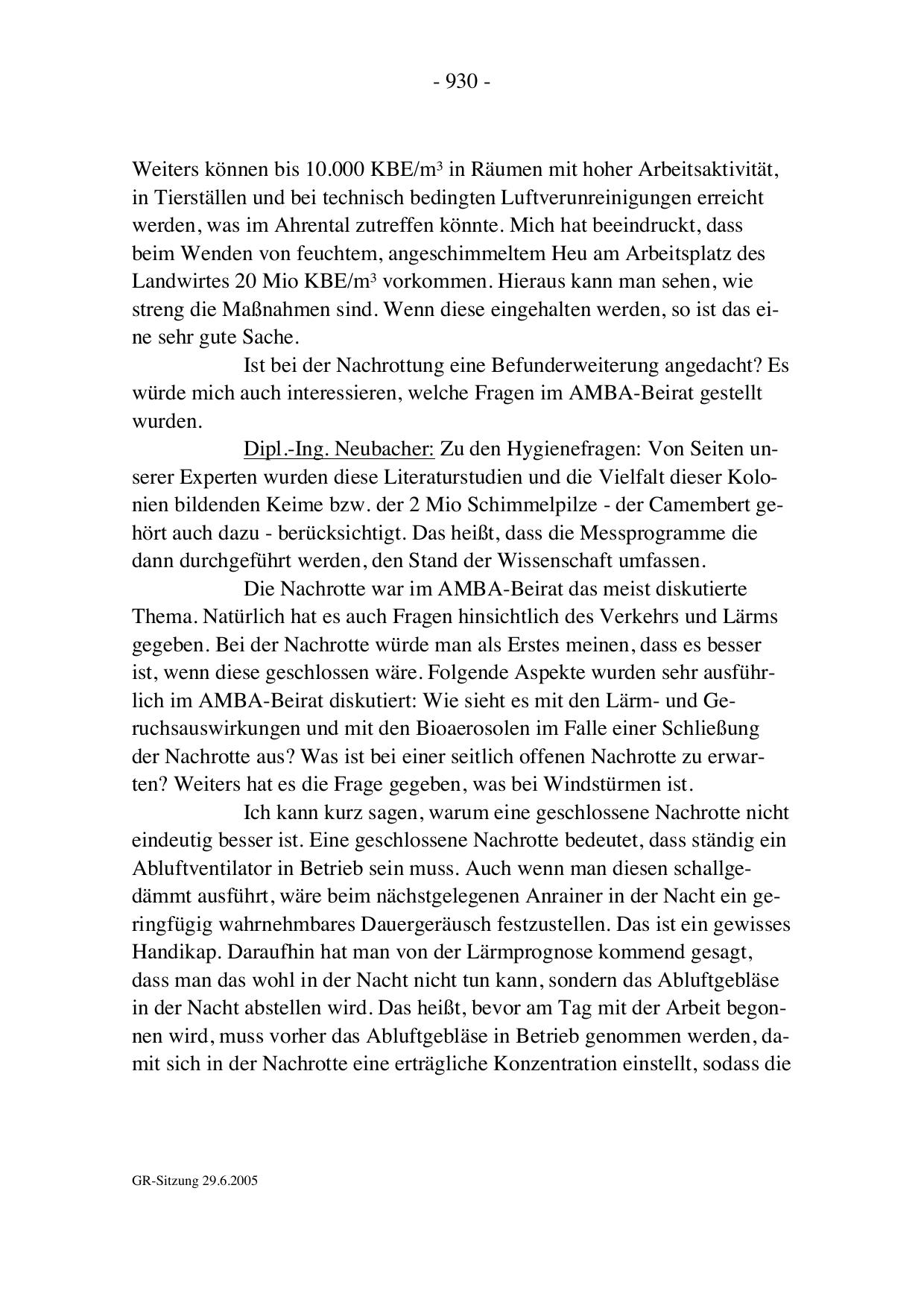 ist, wenn diese geschlossen wäre. Folgende Aspekte wurden sehr ausführlich im AMBA-Beirat diskutiert: Wie sieht es mit den Lärm- und Geruchsauswirkungen und mit den Bioaerosolen im Falle einer Schließung