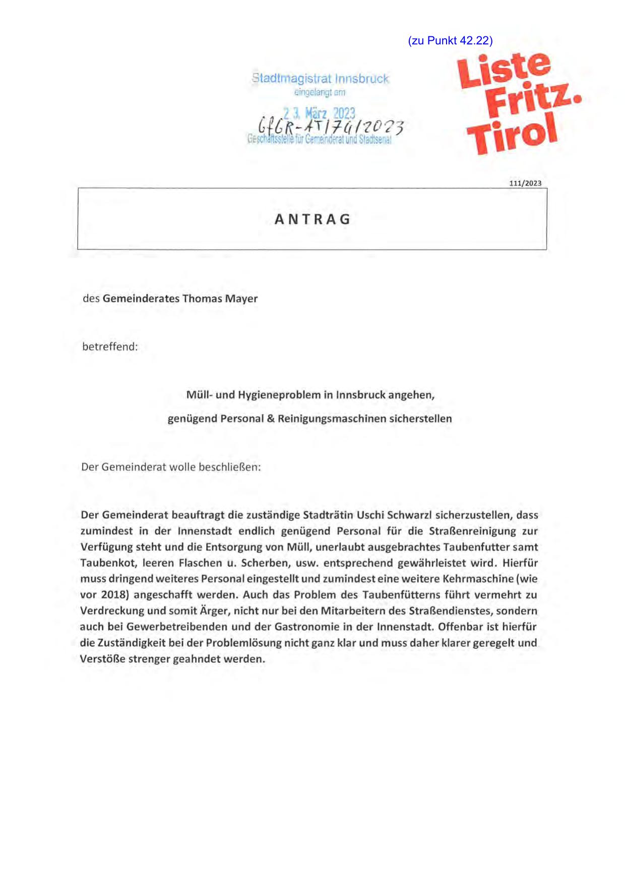 Müll- und Hygieneproblem in Innsbruck angehen,