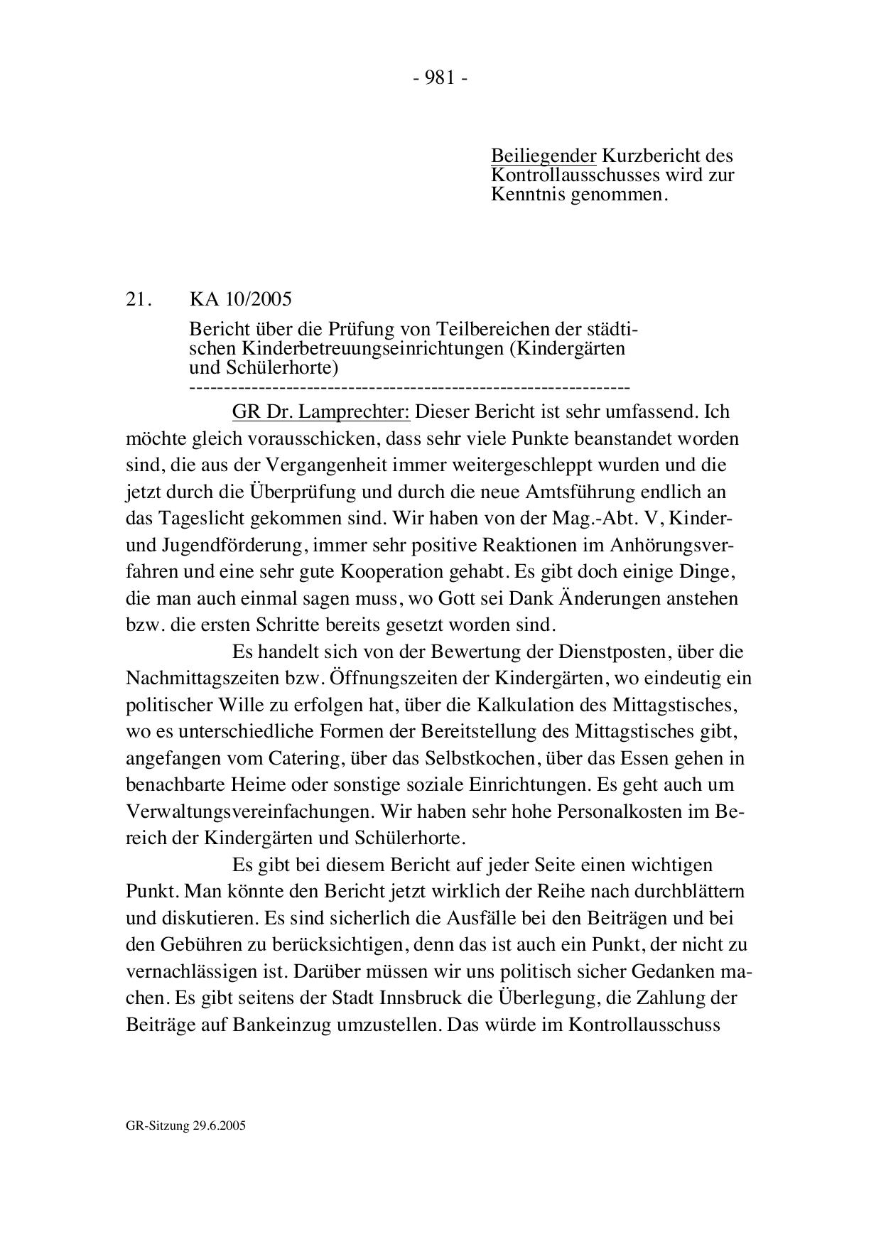 ---------------------------------------------------------------GR Dr. Lamprechter: Dieser Bericht ist sehr umfassend. Ich