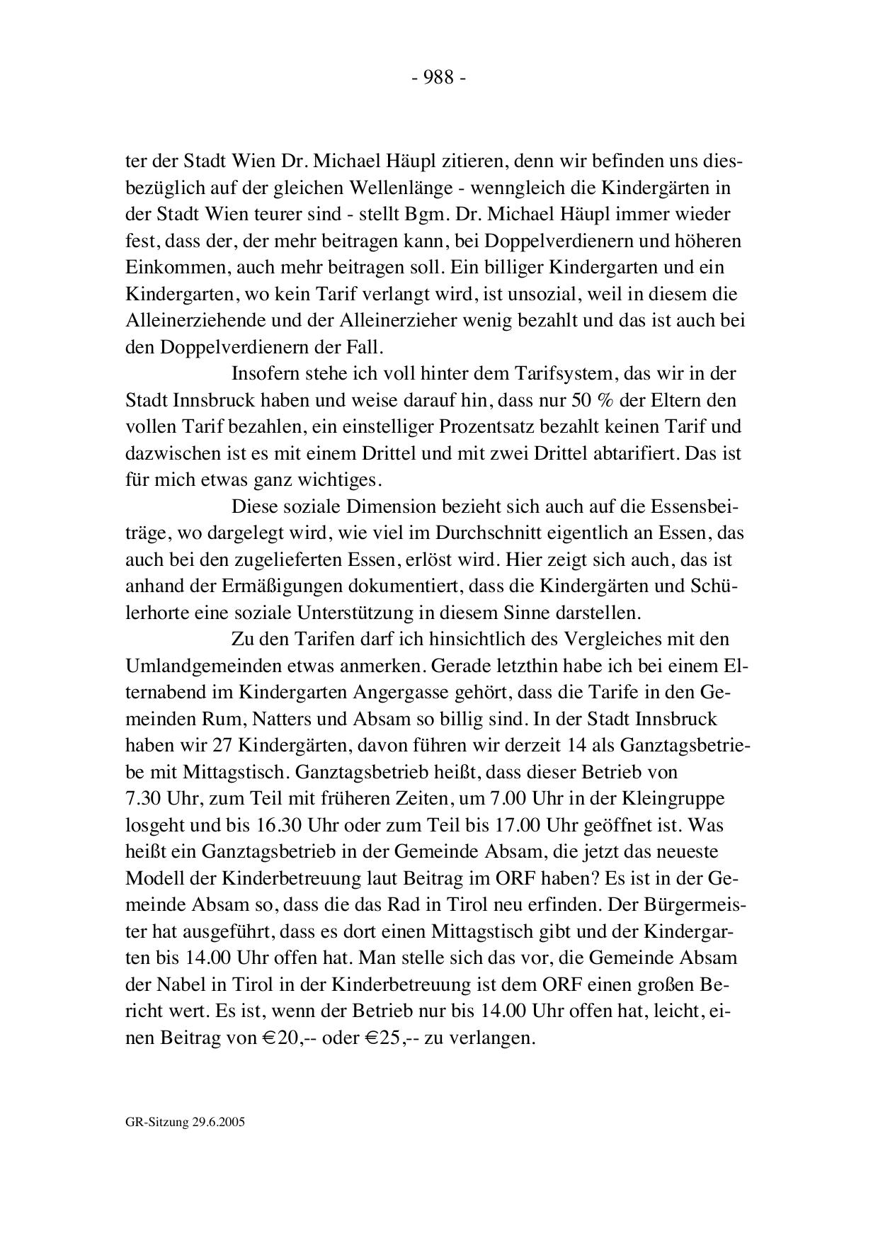 Umlandgemeinden etwas anmerken. Gerade letzthin habe ich bei einem Elternabend im Kindergarten Angergasse gehört, dass die Tarife in den Gemeinden Rum, Natters und Absam so billig sind. In der Stadt Innsbruck
