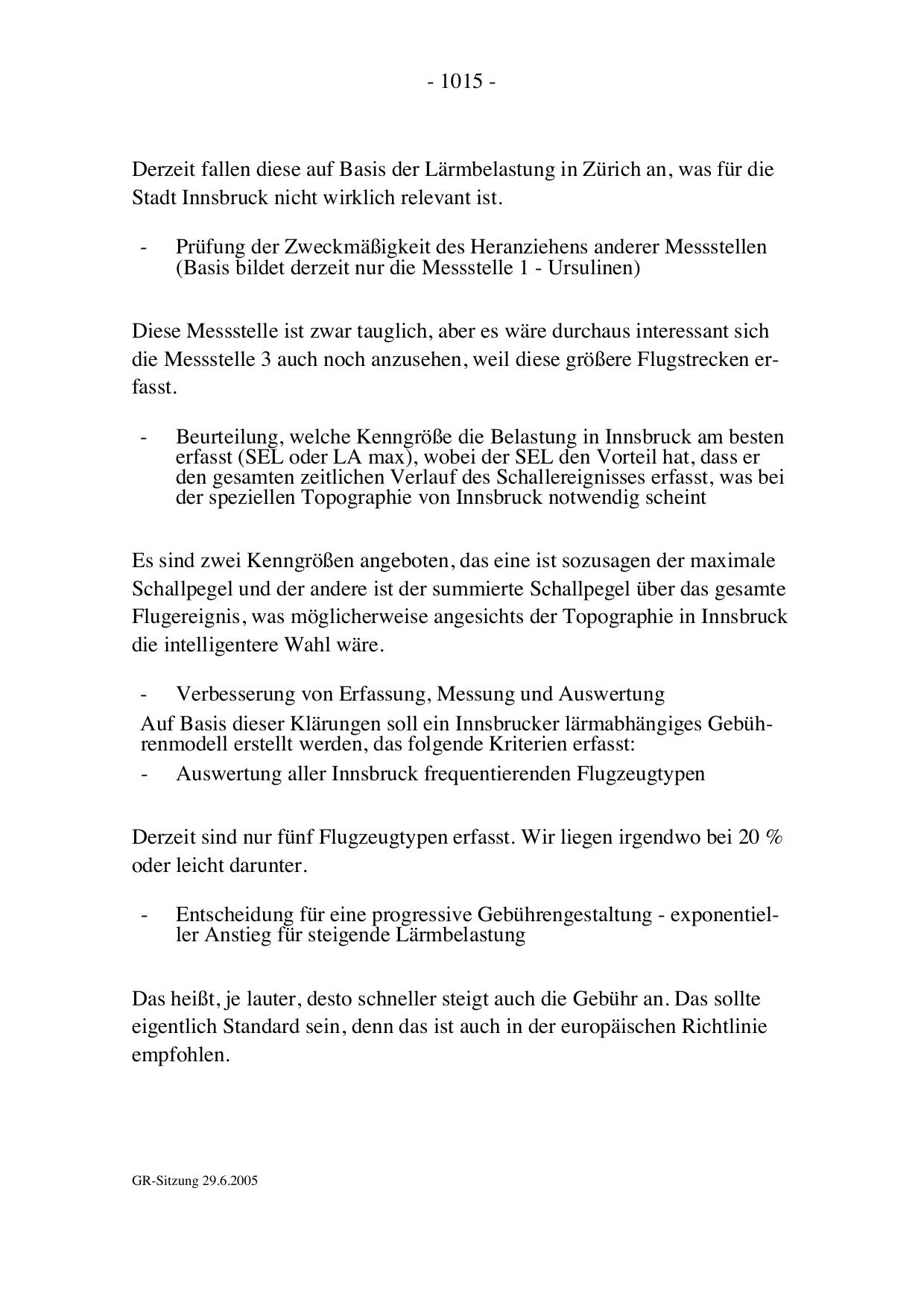 Auf Basis dieser Klärungen soll ein Innsbrucker lärmabhängiges Gebührenmodell erstellt werden, das folgende Kriterien erfasst: