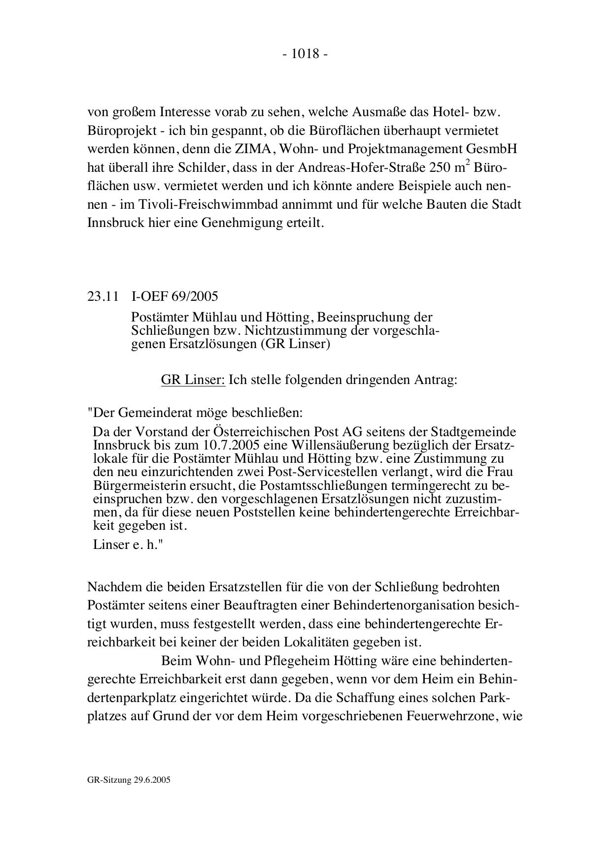 Innsbruck bis zum 10.7.2005 eine Willensäußerung bezüglich der Ersatzlokale für die Postämter Mühlau und Hötting bzw. eine Zustimmung zu