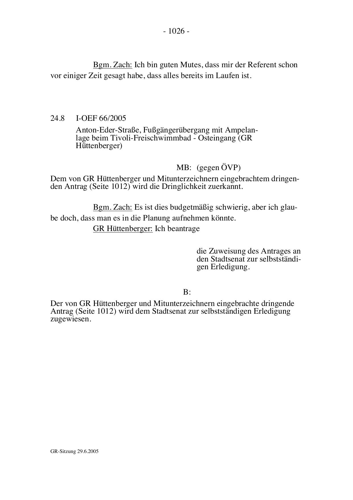 Antrag (Seite 1012) wird dem Stadtsenat zur selbstständigen Erledigung