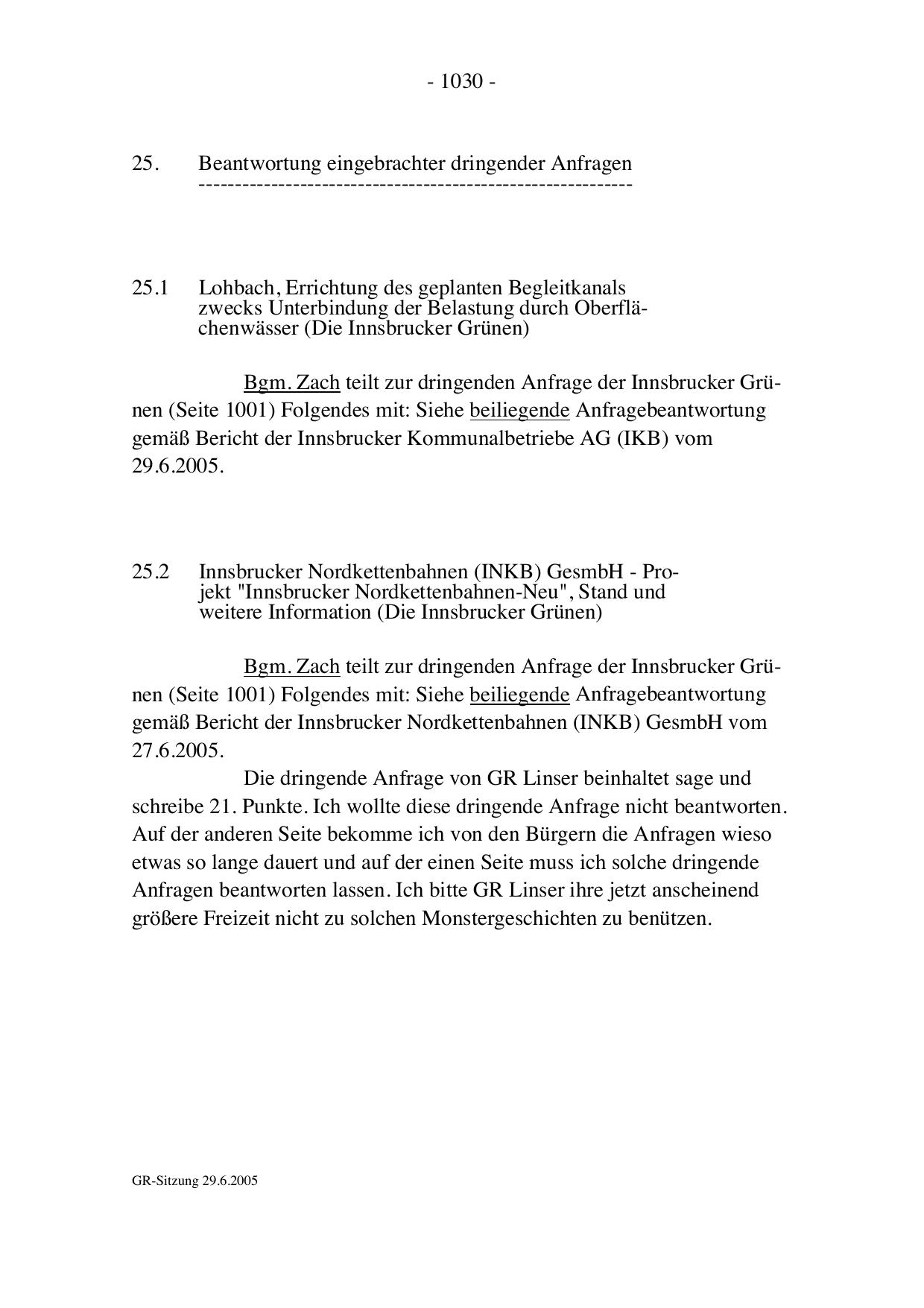 Bgm. Zach teilt zur dringenden Anfrage der Innsbrucker Grünen (Seite 1001) Folgendes mit: Siehe beiliegende Anfragebeantwortung