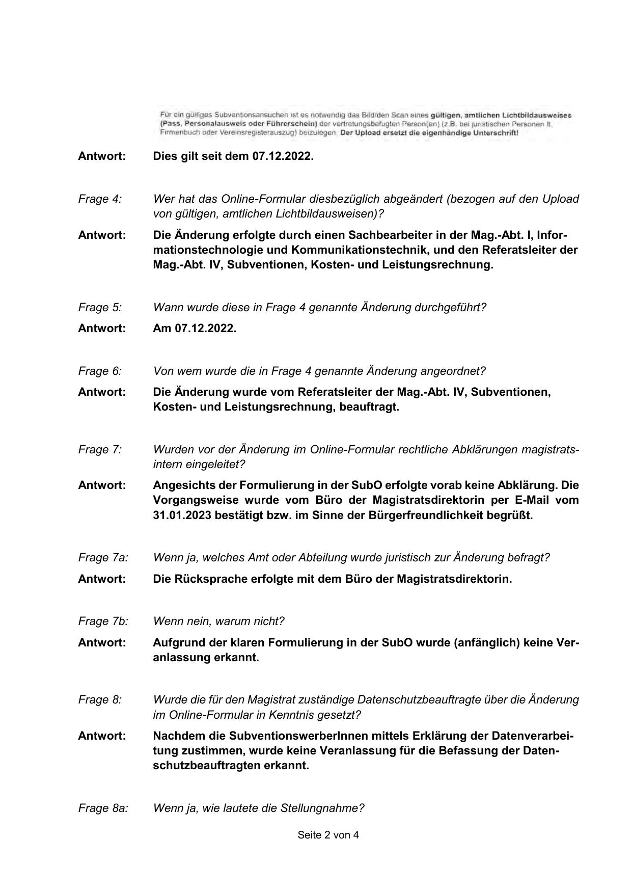 Wurden vor der Änderung im Online-Formular rechtliche Abklärungen magistratsintern eingeleitet?